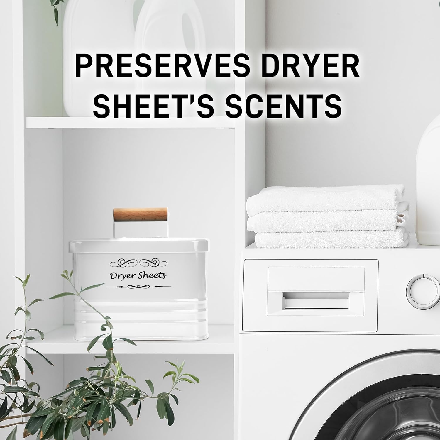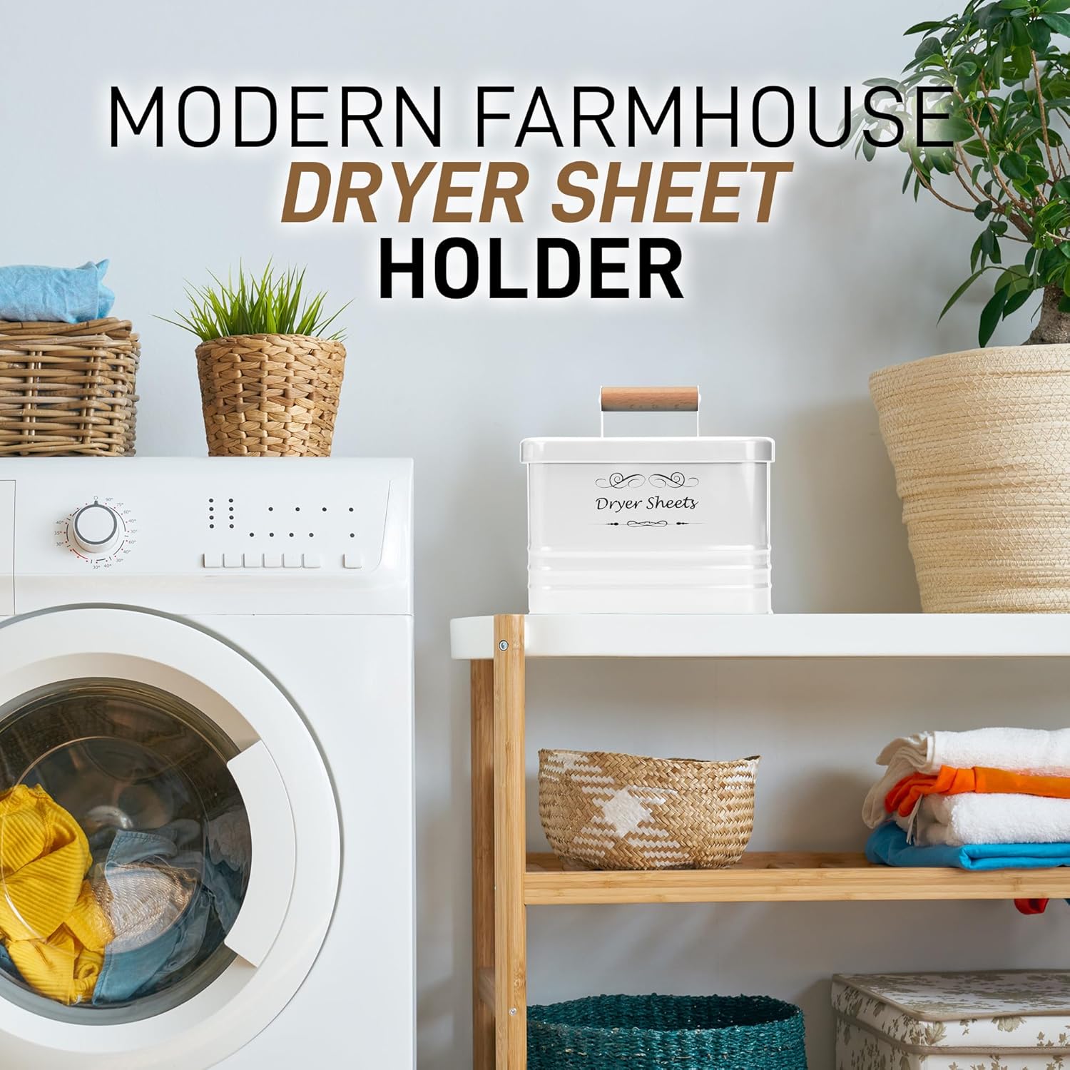 - DRYER SHEETS HOLDER FOR LAUNDRY ROOM: Elevate your laundry room decor with our modern farmhouse style dryer sheet container. Keep the area perfectly organized without taking up a lot of storage by placing it on the shelf, countertop, or decorative trays.
