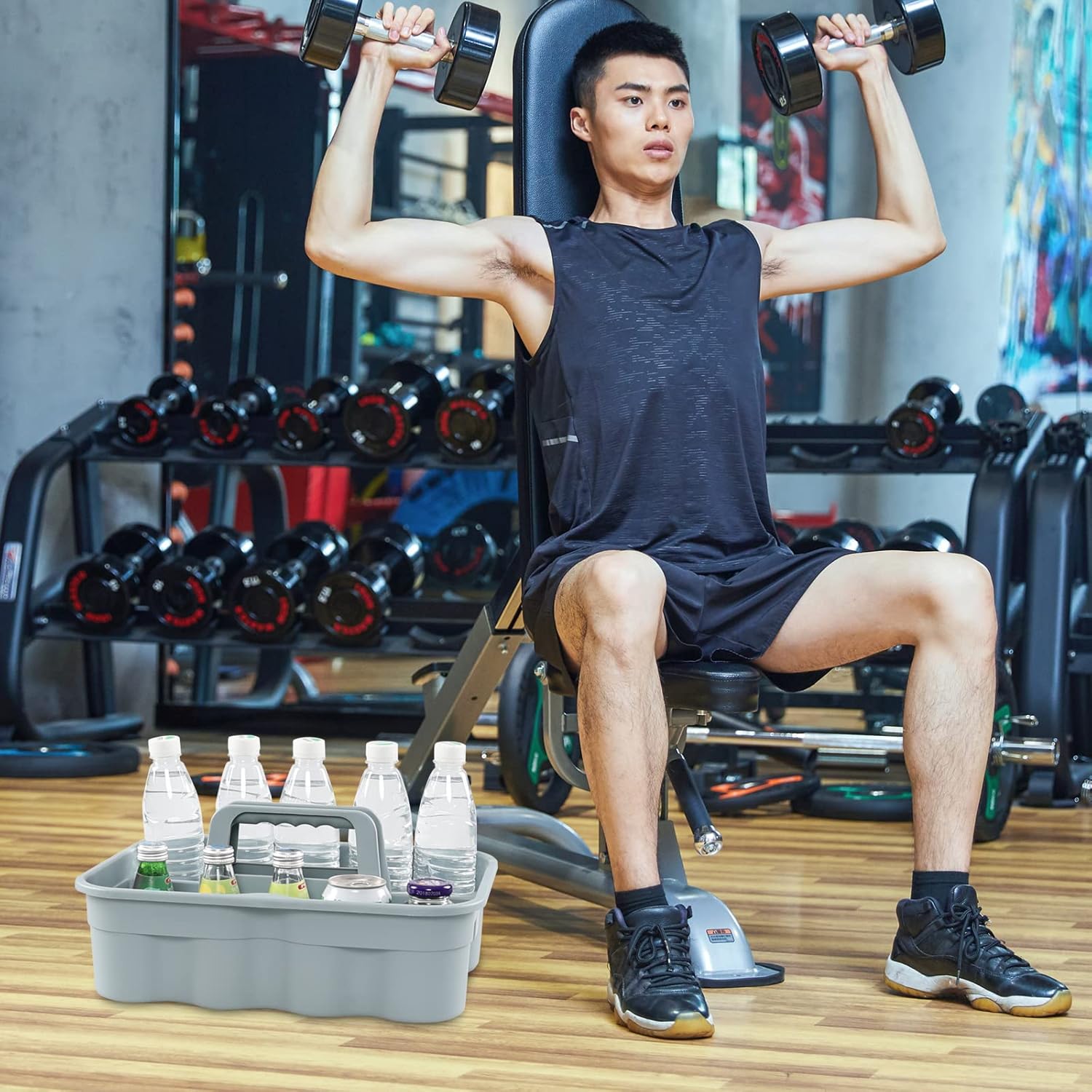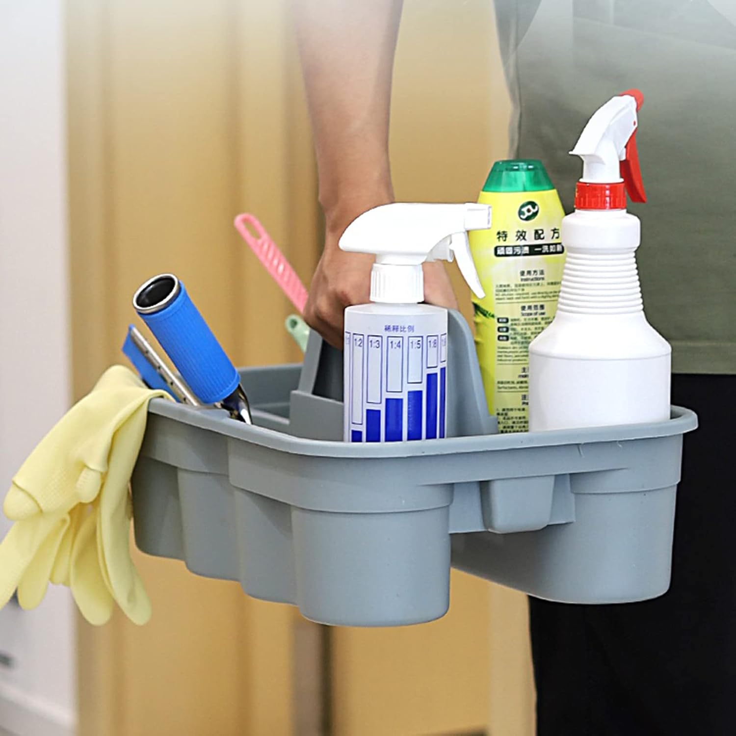 6-Pack Plastic Caddy for Cleaning Products, Caddy with Handle, Gray