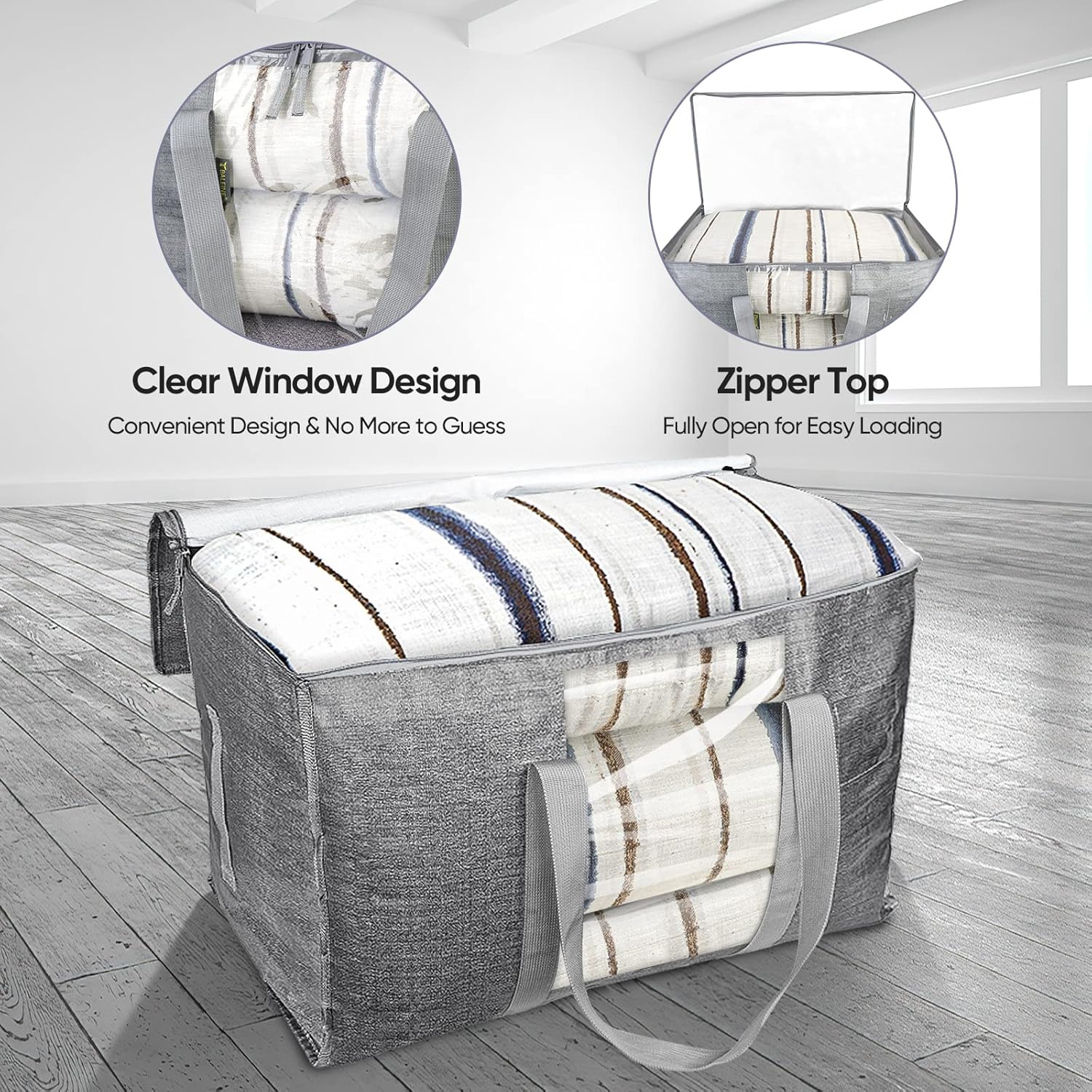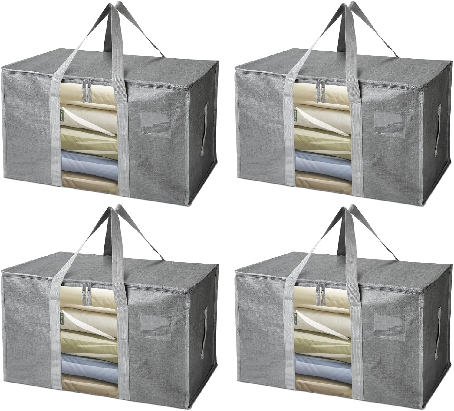 BALEINE 4-Pack Oversized Moving Bags with Reinforced Handles, Heavy-Duty Storage Tote Moving Supplies for Packaging, Camping (Gray w/Window, 4-Pack)