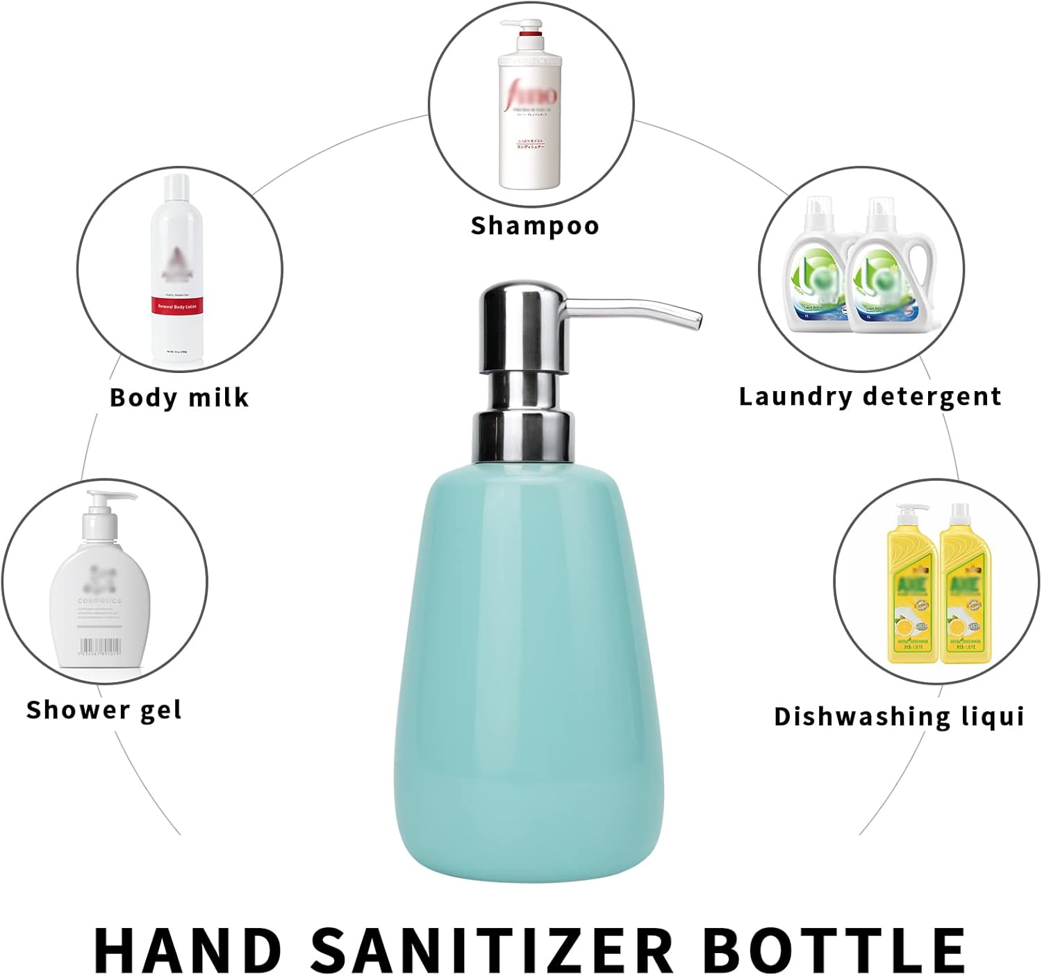 Hand Soap Dispenser Ceramics Bottles with Stainless Steel Pump Bathroom Empty Shampoo Bottles 10oz/300ml 2.76 inches Tall and 1.18 inches Wide