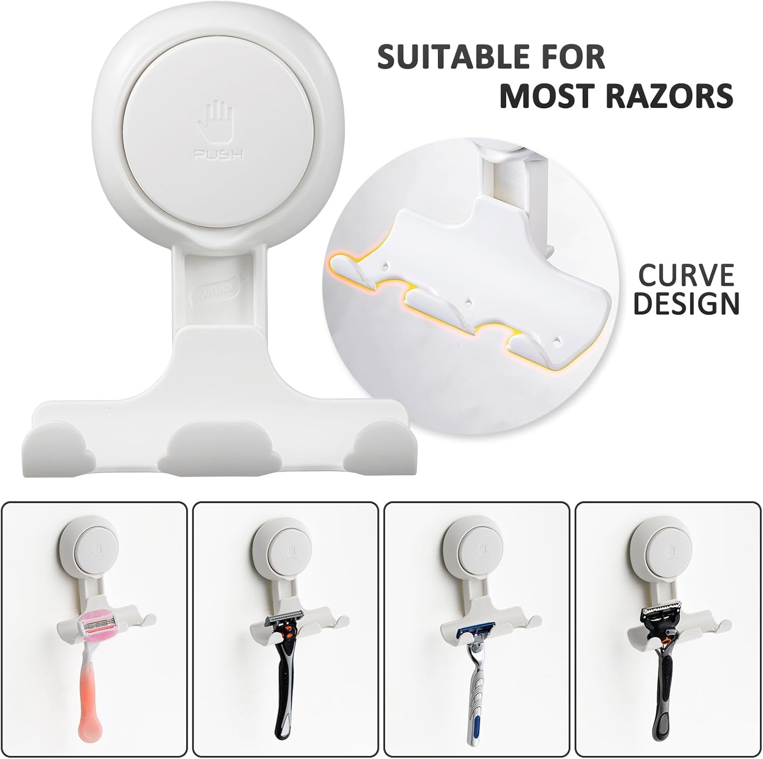 LEVERLOC Razor Holder for Shower 2 Pack, Powerful Suction Cup Shower Hooks for Towel, Loofah, Razor, Squeegee, Damage-Free Wall Hooks, Shaver Holder for Bathroom, Easy to Install and Reuse, White