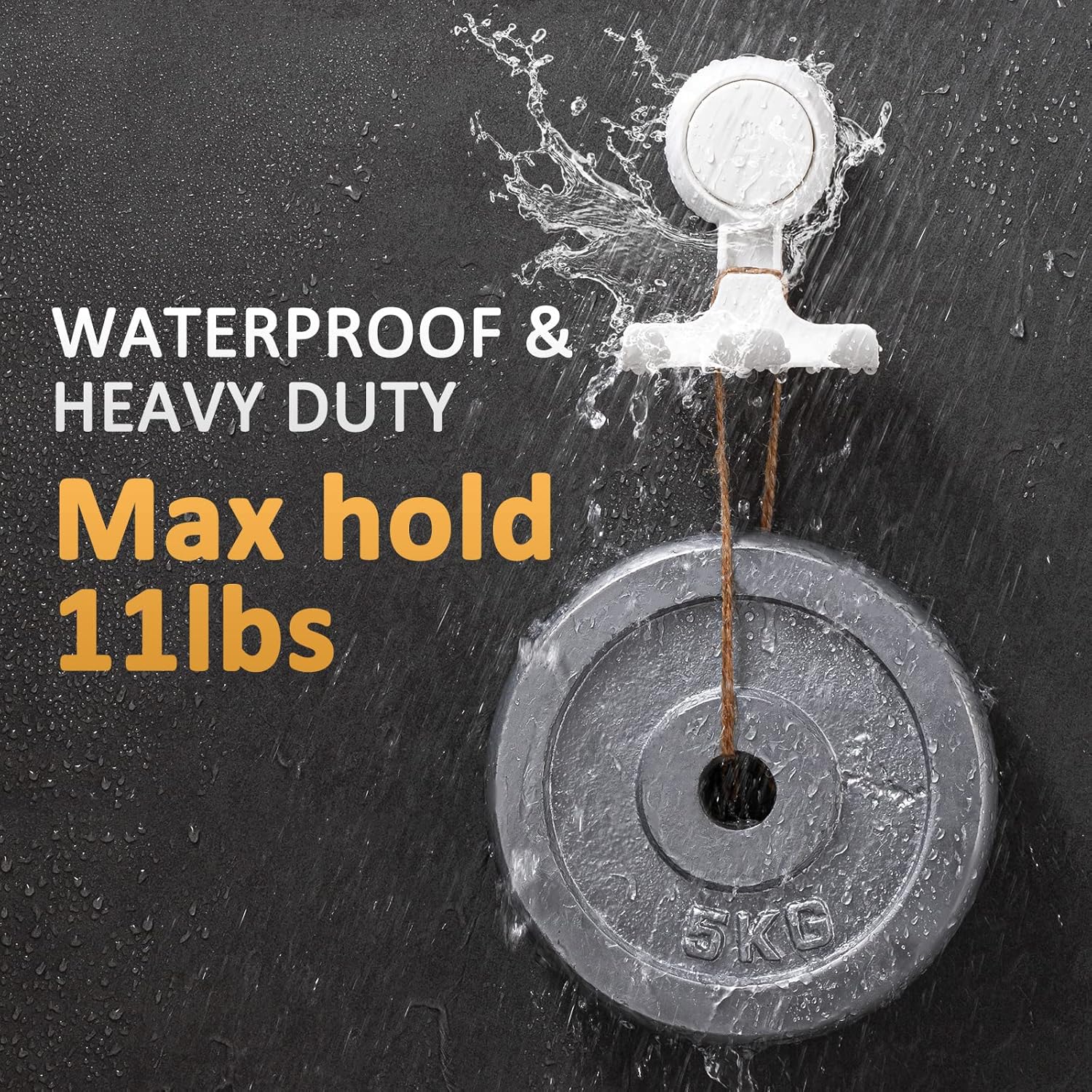 - Powerful suction cup: The shower hooks Suction Cup with bionic design of octopus tentacles ensures weather proof(-4°F-174°F), waterproof, oil-proof and anti-aging; Shower razor hook with thicken plastic can hold up to 11 lbs EACH and stick sturdy for years.You can remove and re-install it in a new location for reusing