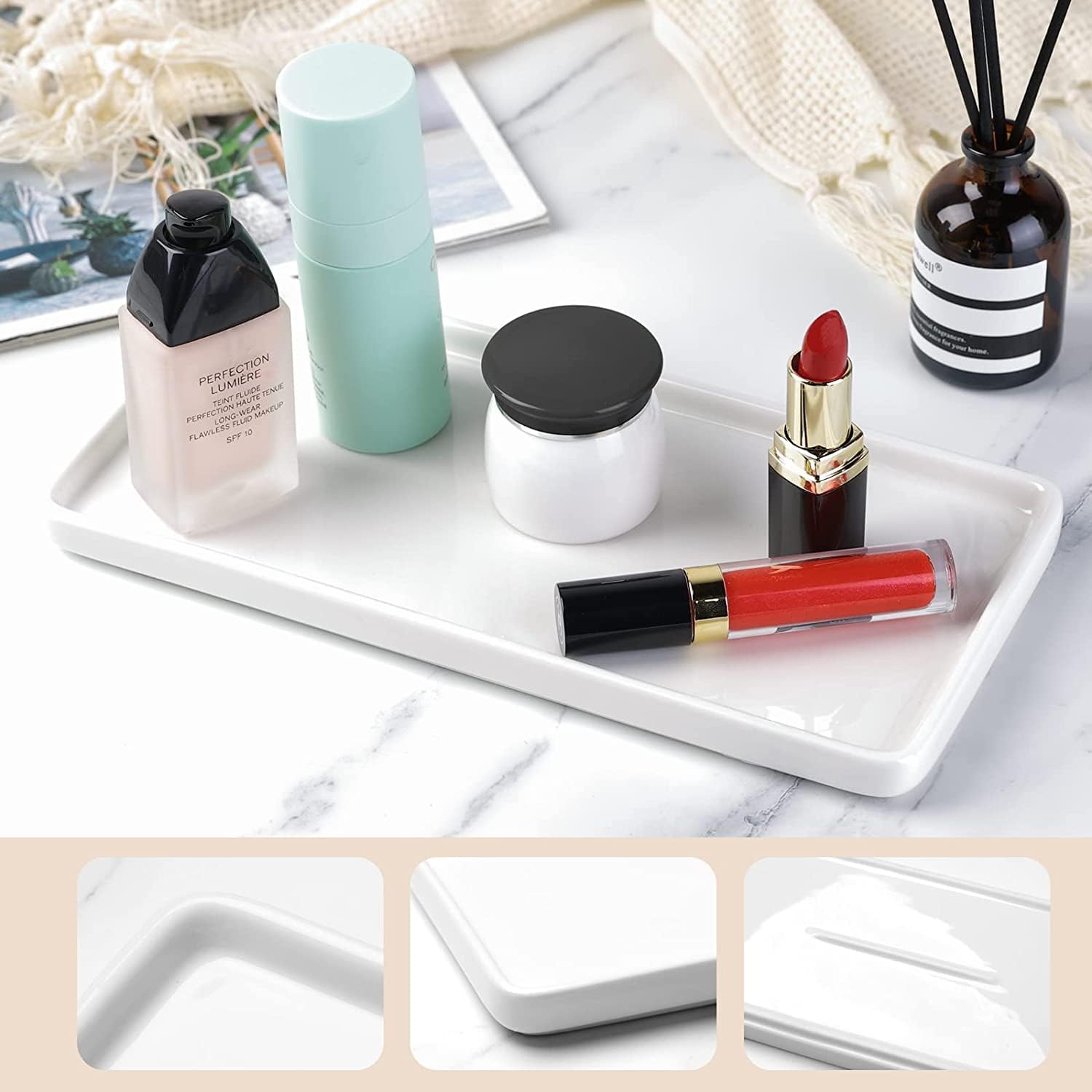 - GREAT AS GIFT: The ceramic sink tray can work as display tray for perfume,toothbrushes,lotion bottles,cosmetics,ornaments,jewelry,watches;Even a serving tray for food drinks and coffee;A special and useful gift for love collecting small objects