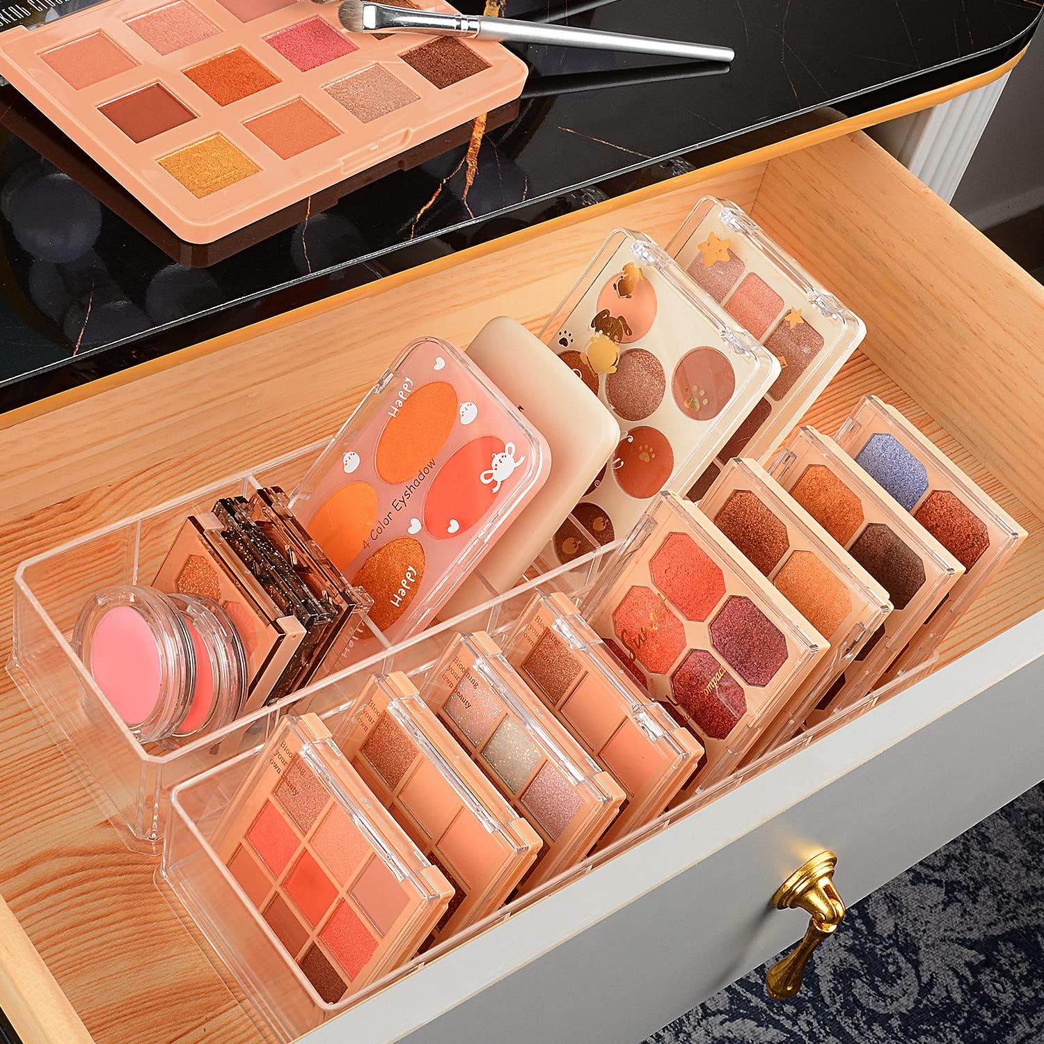 - Classify Storage: ideal for orderly storing your makeup necessities and small items like eye shadows, contour palettes, powders, lipstick, makeup brush, hair ties and more, keeping your countertop and drawer neatly