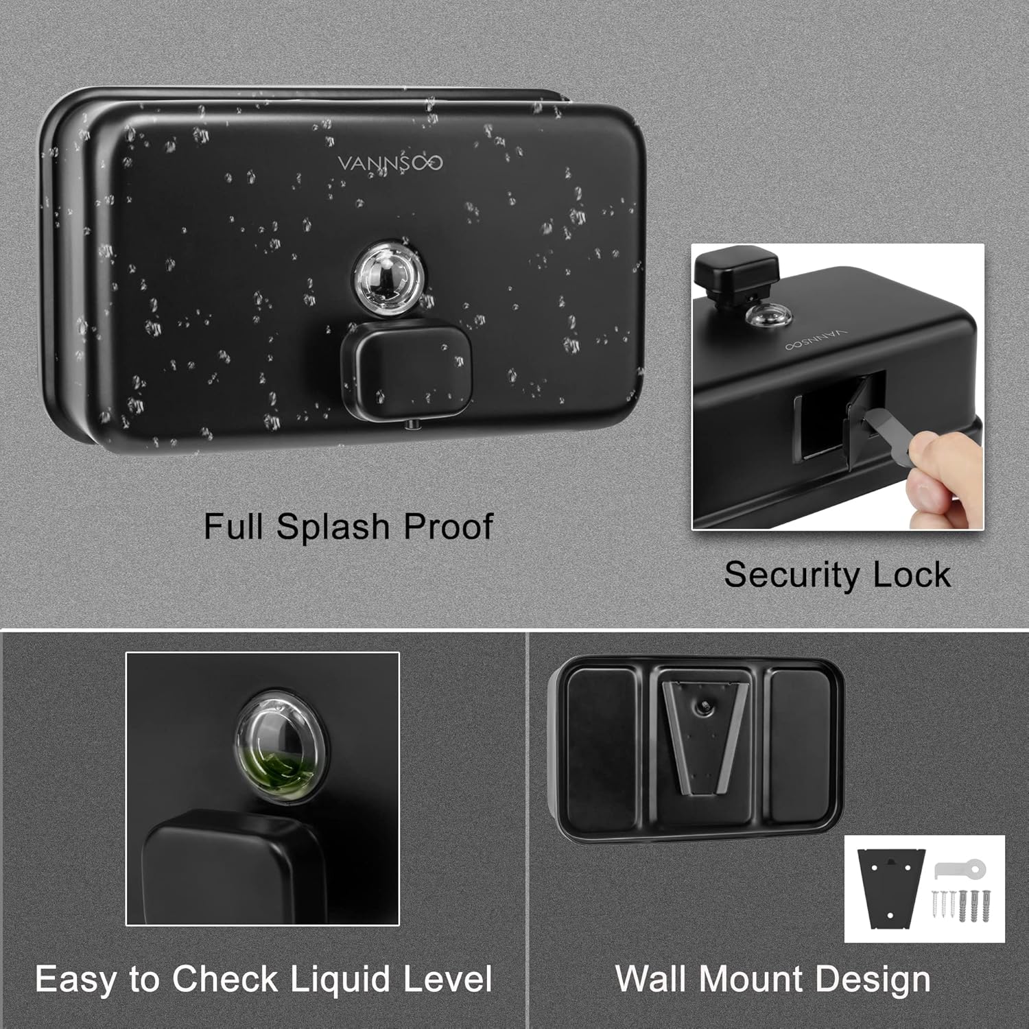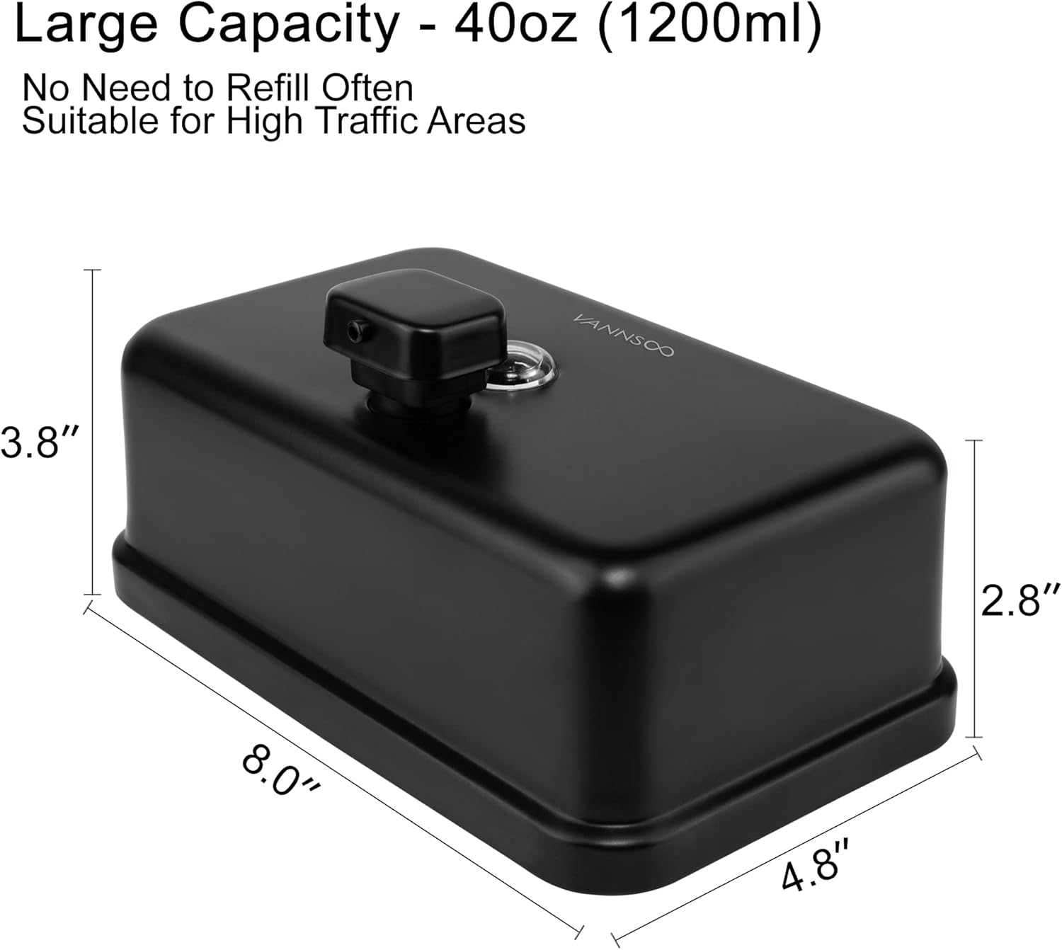 Wall Mounted Hand Soap Dispenser Bathroom, 1200ml 40oz Commercial Stainless Steel Black Liquid Soap Dispenser Wall Mount (Horizontal Black)
