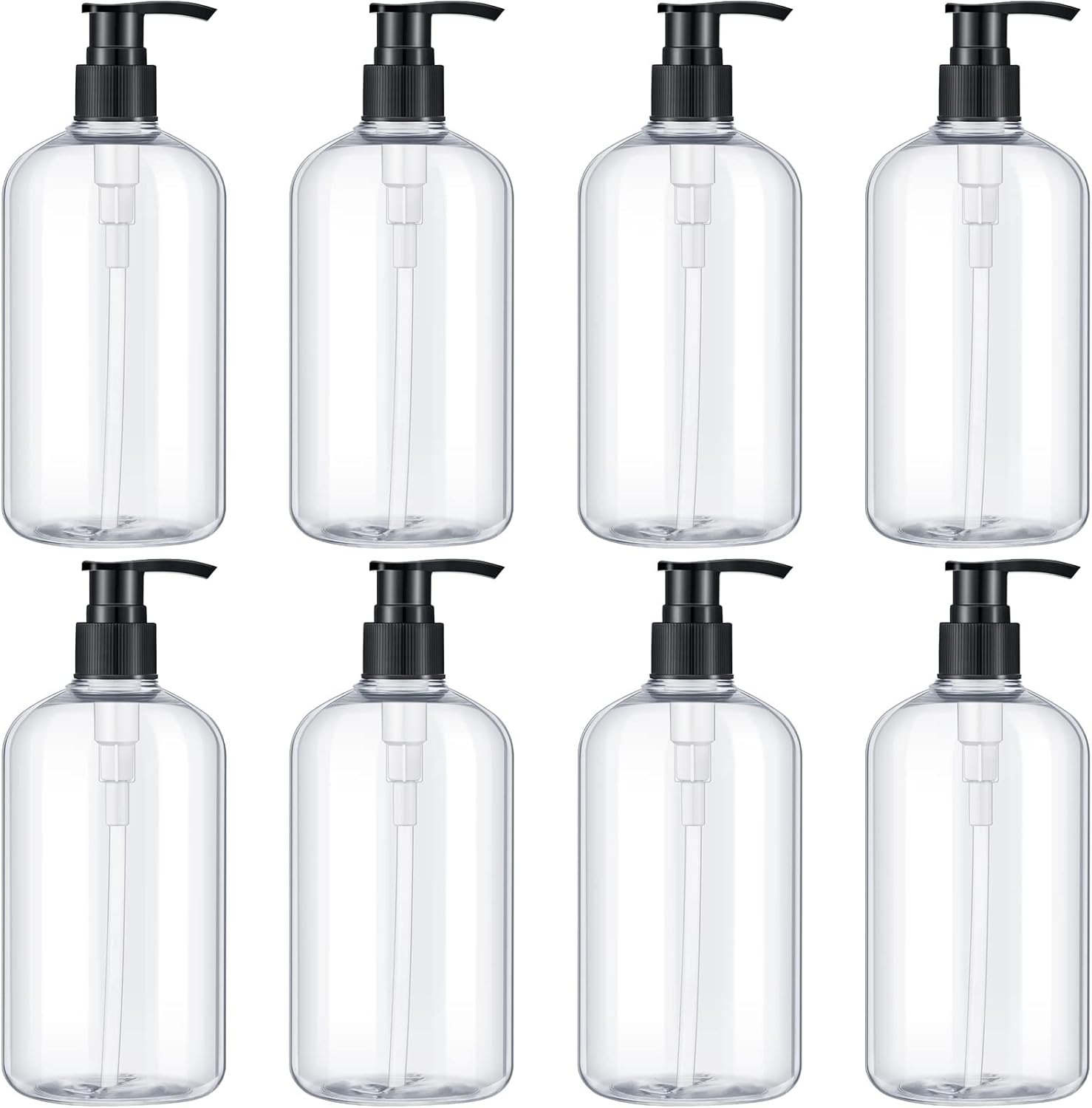 8 Pcs Plastic Pump Bottles Empty Lotion Bottle with Pump Refillable Dish Soap Dispenser Portable Hand Soap Dispenser Shampoo Lotion Container for Oil Liquid Soap(Clear,16 oz)