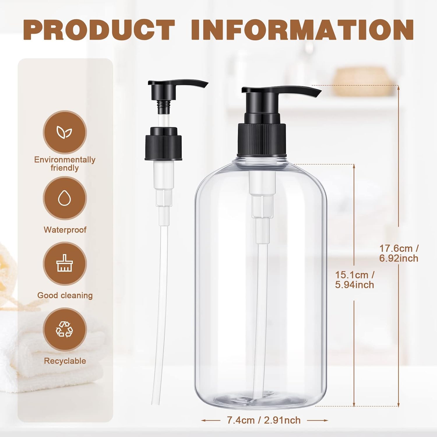 - Package Information: you will get 8 pieces of clear plastic soap dispensers with black pump heads, these empty bottles are available in 2 sizes, with capacities of 8.5 oz and 16 oz, practical and easy to carry, basically meet your various needs of life