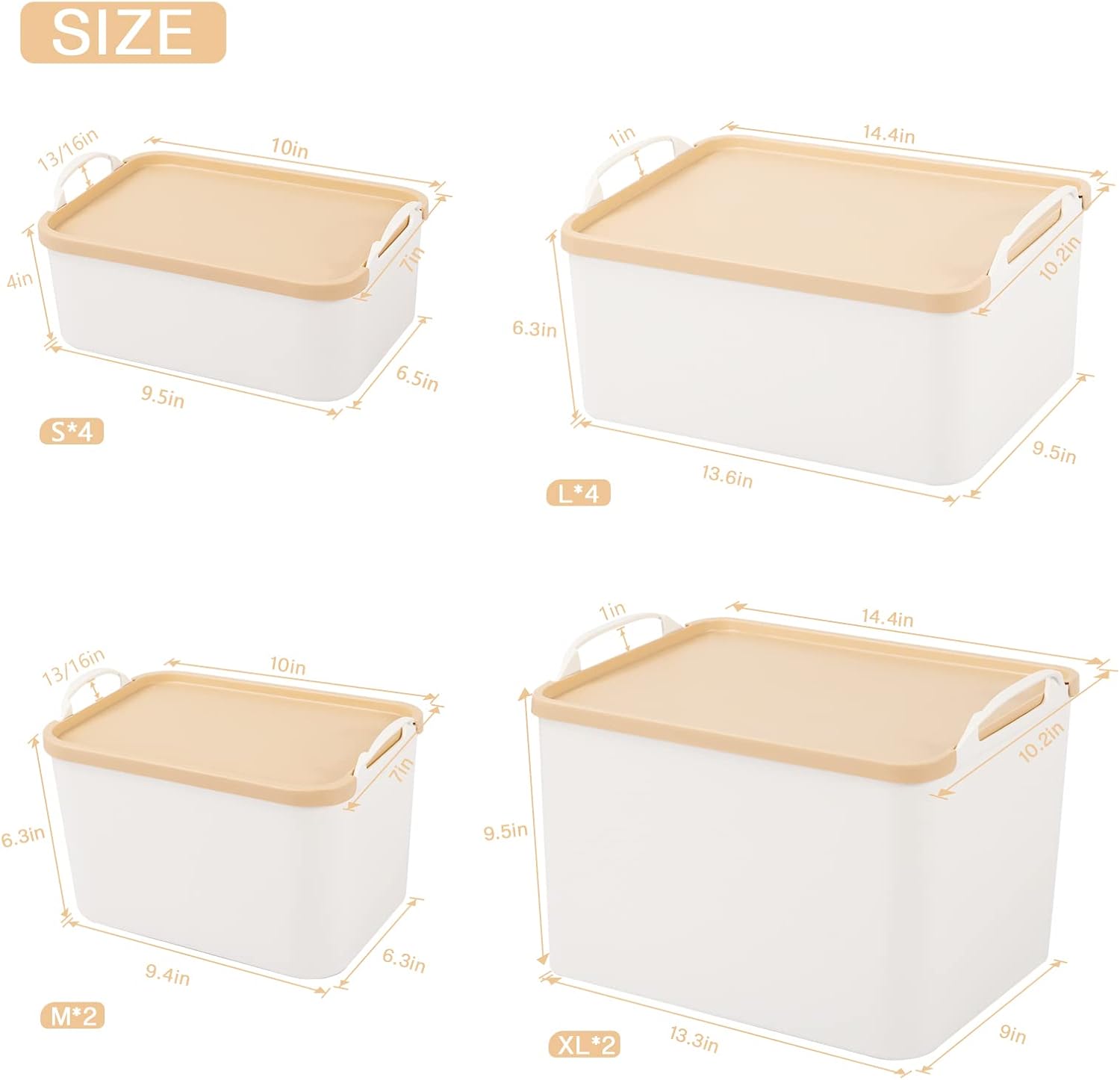 - 【Lid & Handles for Convenience】These plastic storage bins come with handles on both sides for easily moving around. The removable lidded design not only shields your belongings from dust but also simplifies storage and organization