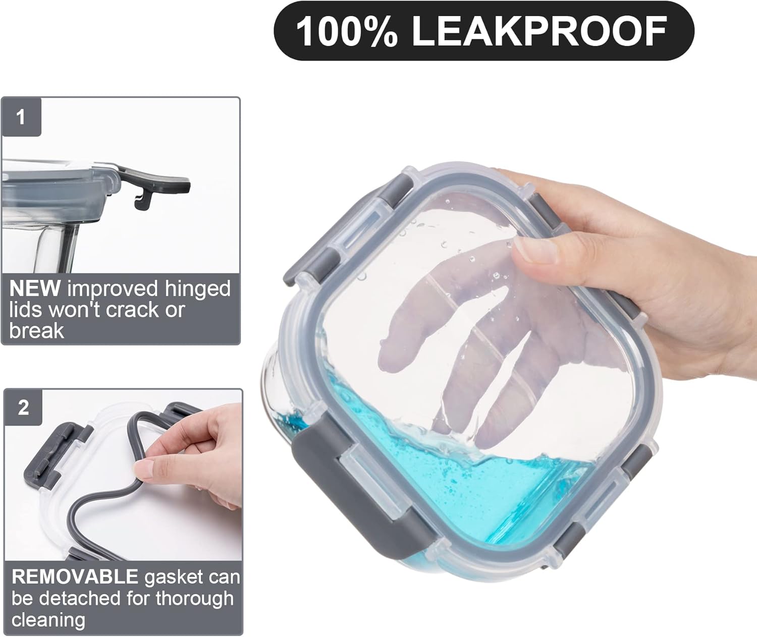 - AIRTING HINDE-LIDS: A locking lid creates an airtight seal for food freshness. Newly innovated hinged-lids technology enables the lid to flip open and shut quickly and lasts longer than those crafted of one piece. Containers are leakproof and perfect for the gym, pool, or work.