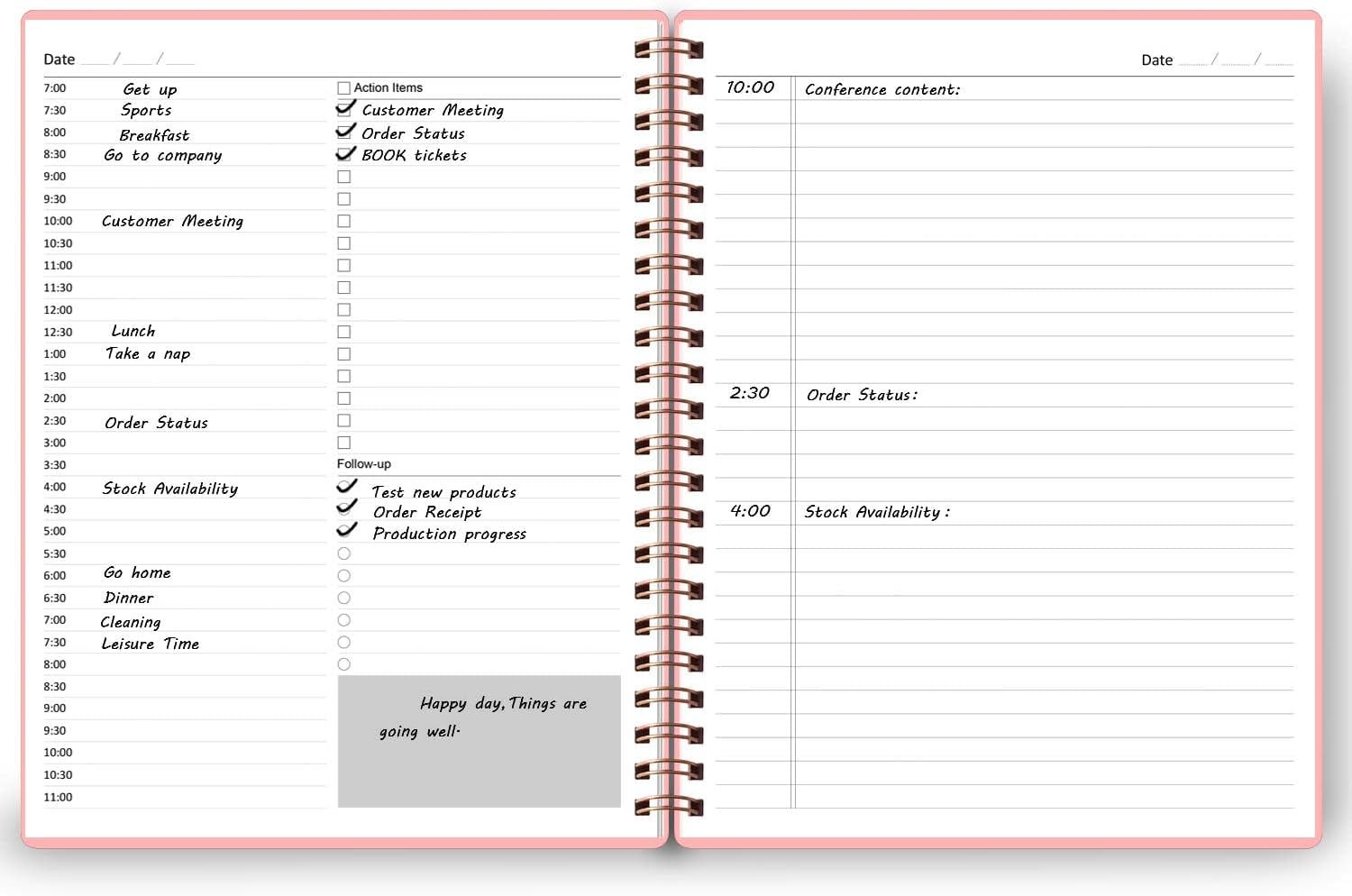 - KEEP FOCUSED & ACHIEVE YOUR GOALS - This daily organizer with appointments from 7:00 AM to 11:00 PM in 30-minute intervals, allows you to keep track of every appointments, action items and follow-ups with space for your top goals and task. This to do list planner could help you to save time and achieve your goals