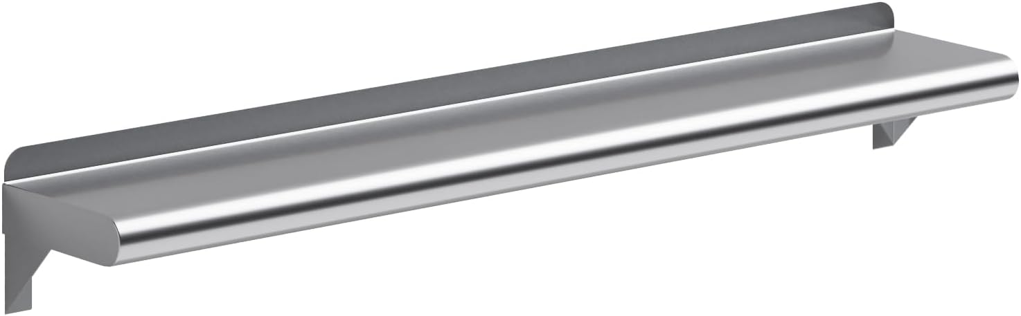 - 6 in. x 36 in. Stainless Steel Wall Shelf with 4 in. High Mounting Brackets. This heavy-duty multifunctional stainless wall shelf is made with 18 gauge stainless steel and can hold up to 150 Lbs of weight. The design features a 1 in. backsplash and bullnose edge. It's made with durable welded corners and support brackets.