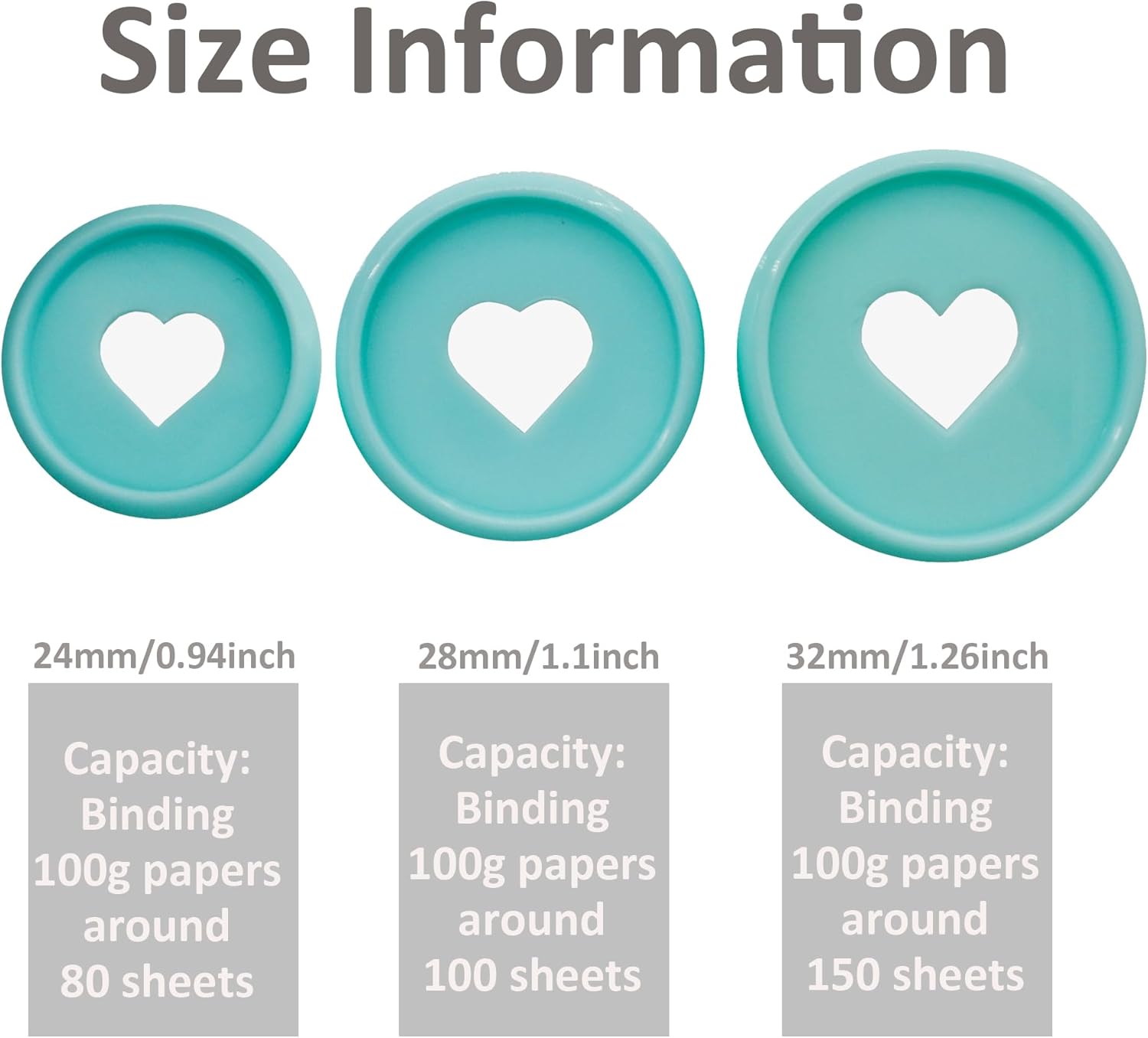 - Dimensions: 0.94 inch(24mm) holds 80 sheets/1.1inch(28mm) holds 100sheets/1.26inch(32mm) holds 150sheets.Our heart discs are compatible with popular discbound notebook systems,discbound planner accessories and covers.