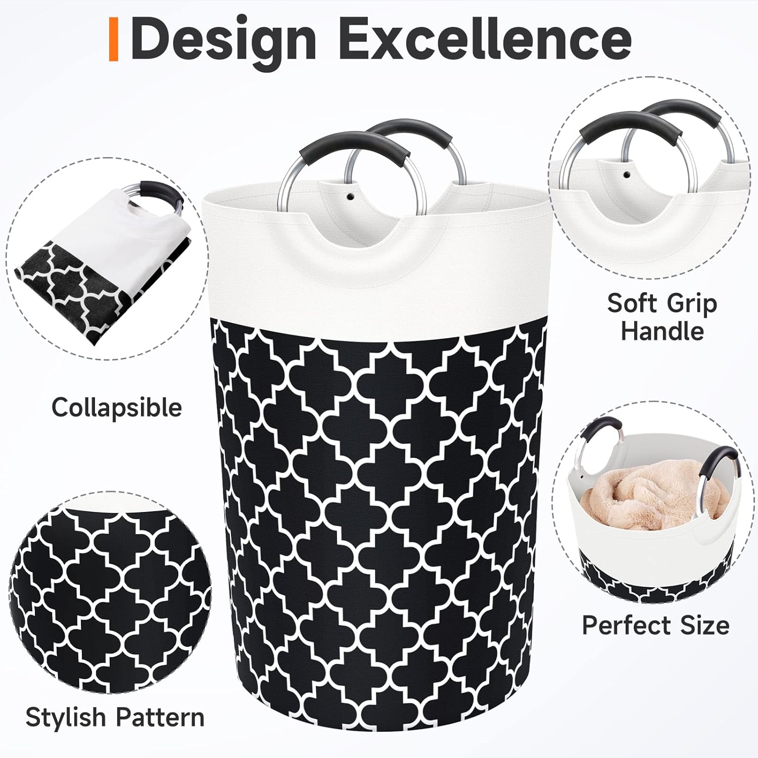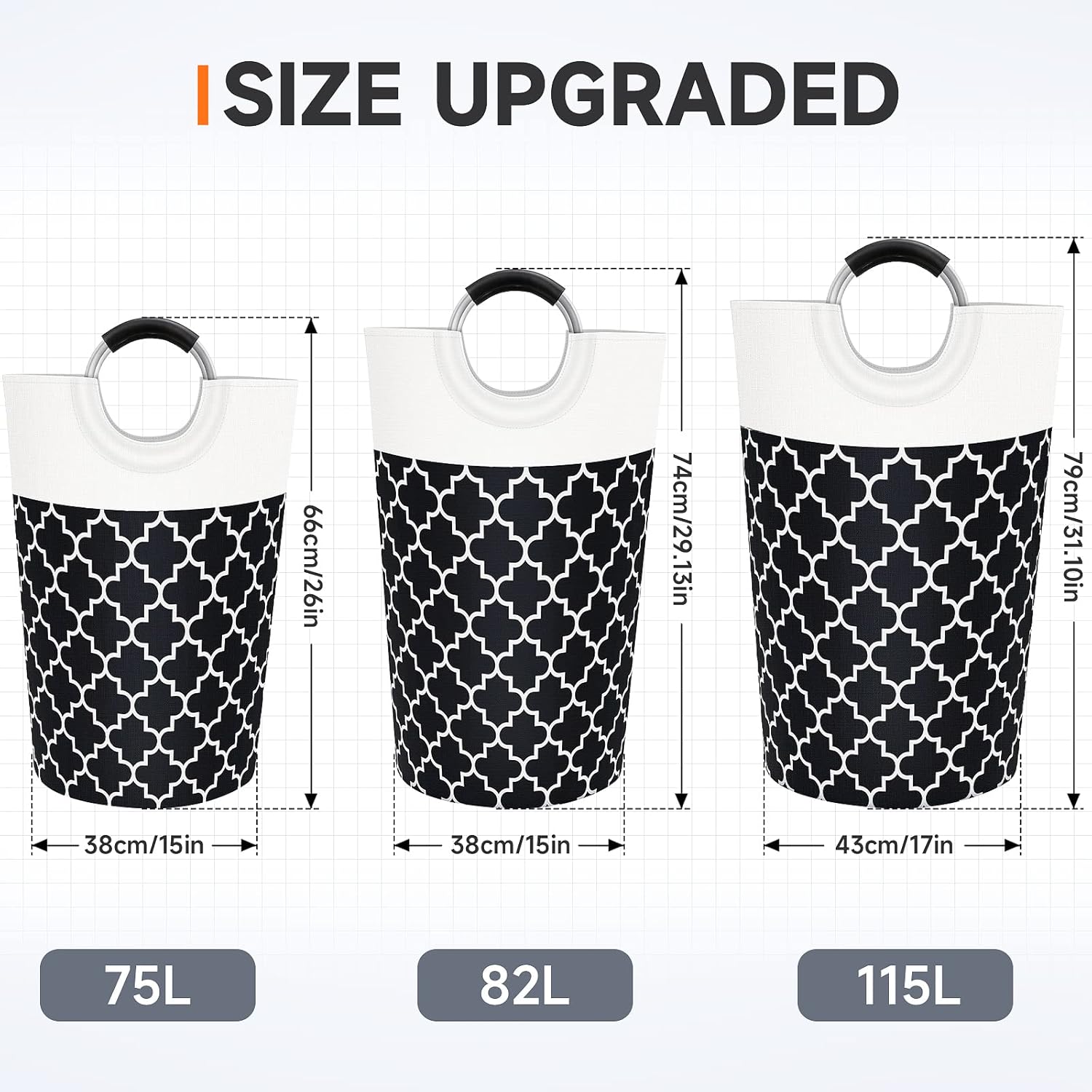 Large Laundry Basket Laundry Hamper Bag Washing Bin Clothes Bag Collapsible Tall With Handles Waterproof Travel Bathroom College Essentials Storage For College Dorm, Family (Black)115L