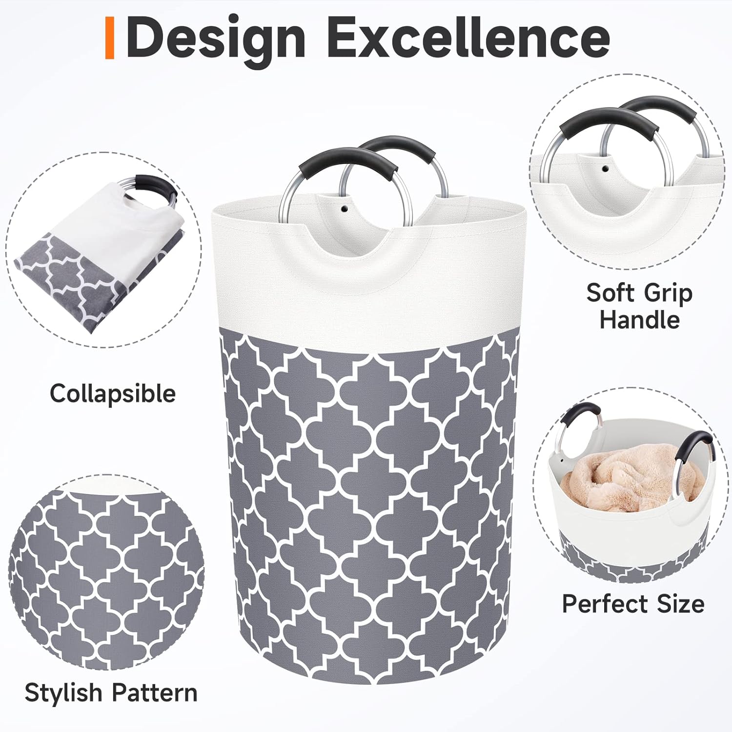 Large Laundry Basket Laundry Hamper Bag Washing Bin Clothes Bag Collapsible Tall with Handles Waterproof Travel Bathroom College Essentials Storage for College Dorm, Family (Grey) 75L