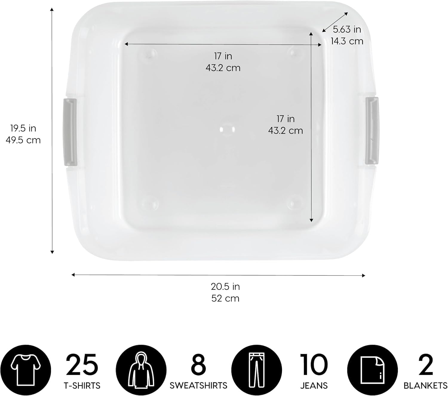 - CLEAR VIEW: Quickly and easily find all your items with the clear view drawer. Organize your closet easily and conveniently with these heavy-duty boxes. Sturdy plastic bin with buckle up latches secure contents inside.