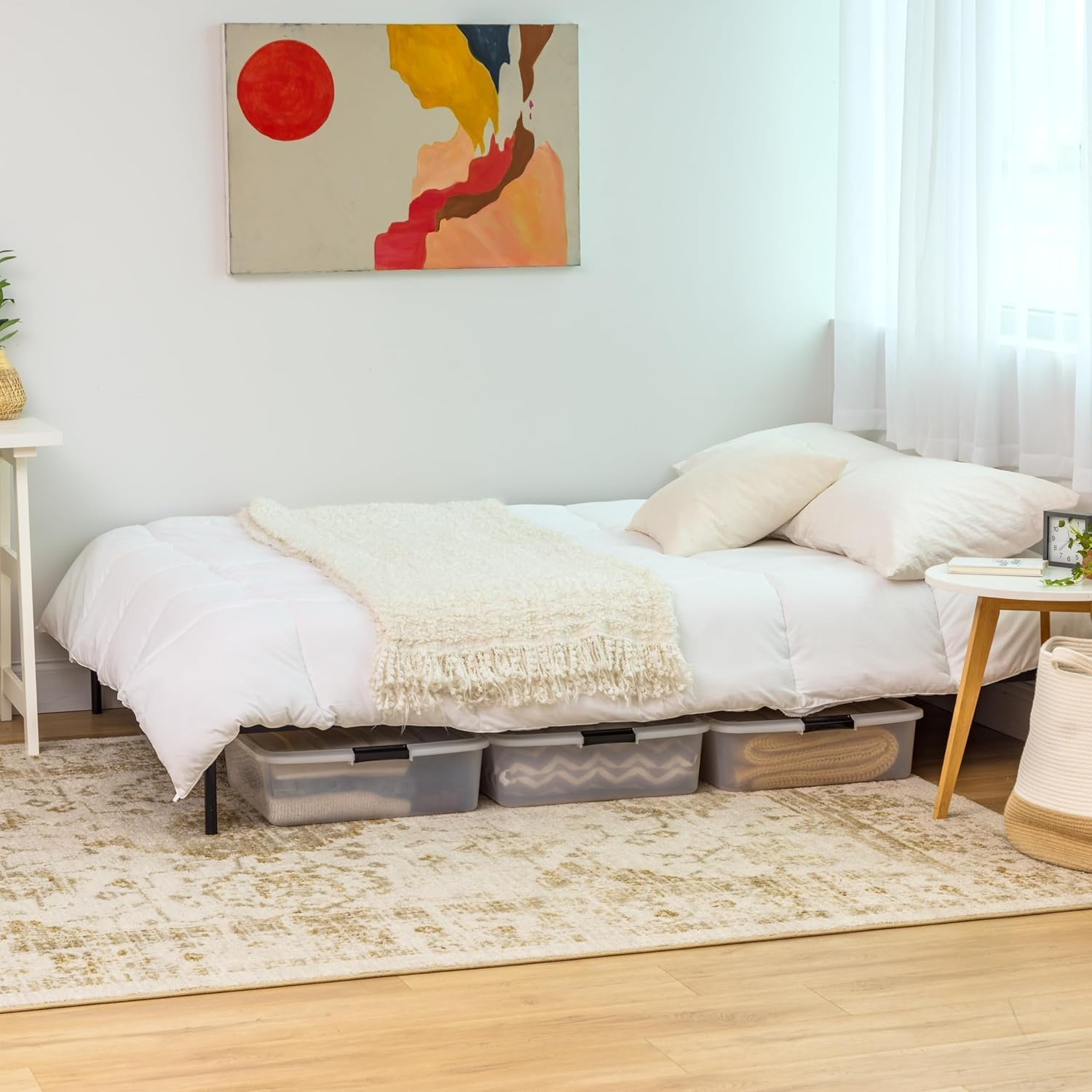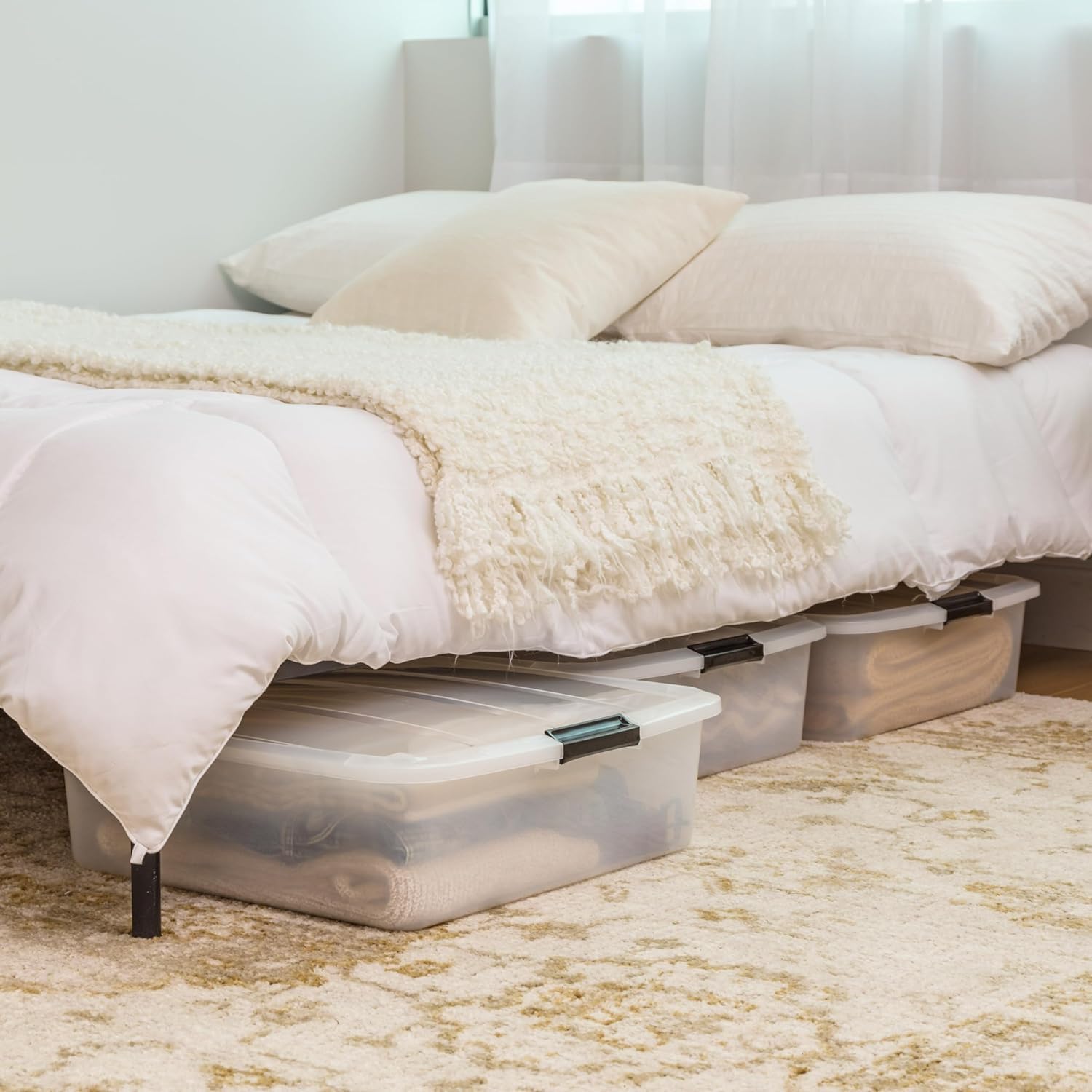 IRIS USA 33 Qt Plastic Under Bed Storage Organizer Bin Container with Secure Lids and Durable Black Buckles, Multi-Purpose for Clothes, Shoes, Clothing, and Bedding, Short, Clear, 3 Pack