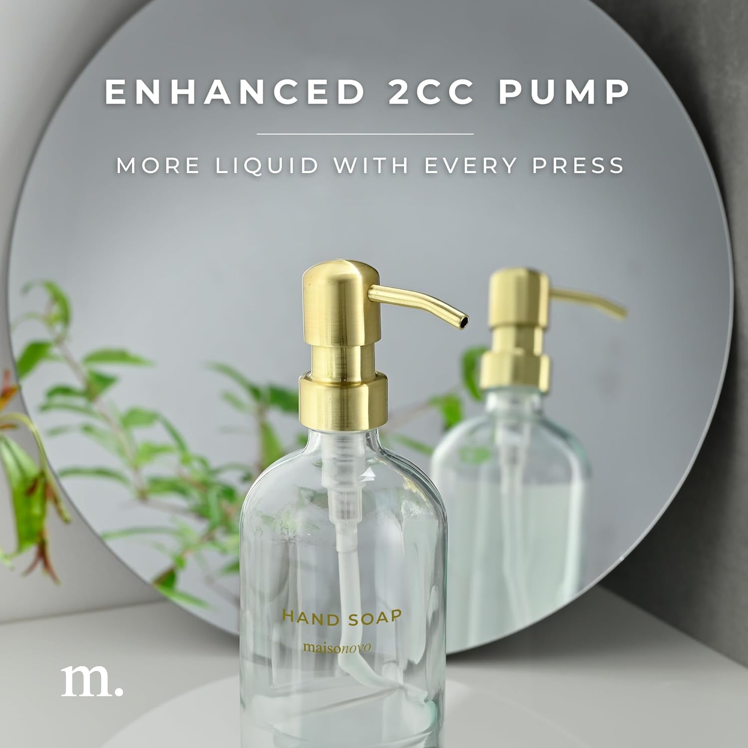 MaisoNovo Soap Dispenser 2-Piece Set | 16.9oz Clear Bottles with Gold Stainless Steel Pump