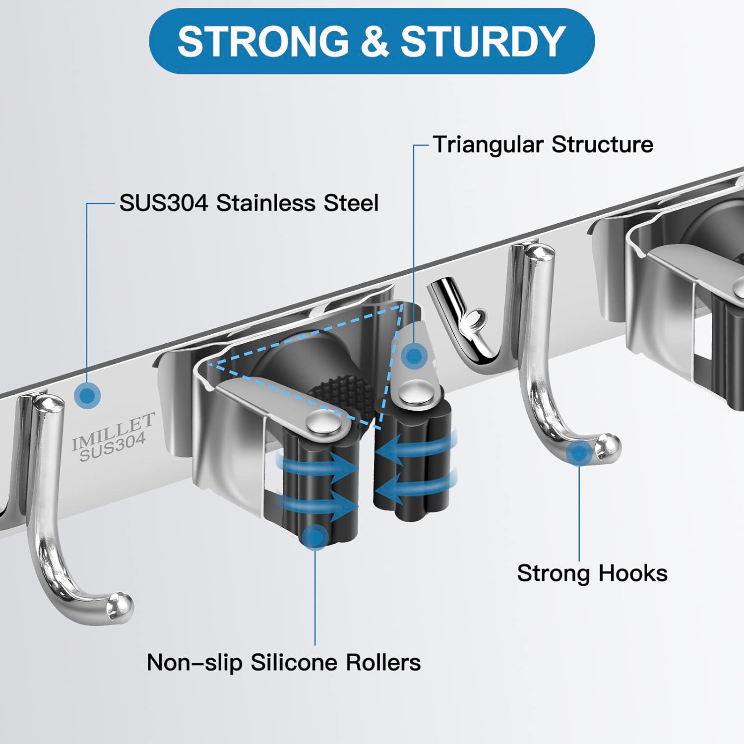 - STRONG & STURDY: Broom organizer wall mount is made of 304 stainless steel, corrosion-resistant, moisture proof and waterproof. Compared with the plastic broom rack, it's more stronger and sturdy. And this broom hanger wall mount can hold up to 200 pounds