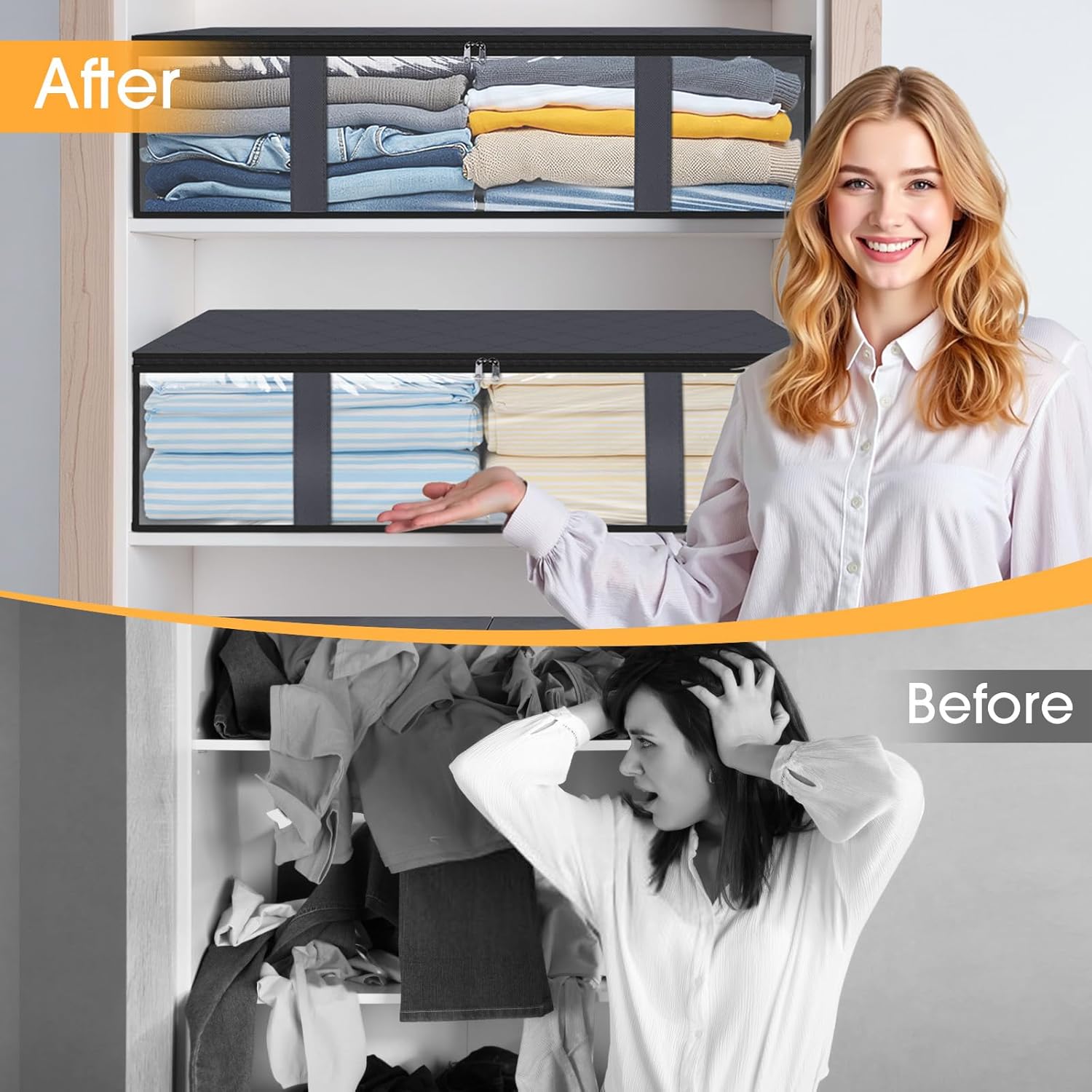 - Multifunctional Storage Organizer:StorageRight under bed storage containers for organizing fits perfectly under your bed. From blankets and pillows, to out-of-season clothes and shoes, to books! These storage bags have sturdy construction and can handle all types of storage needs