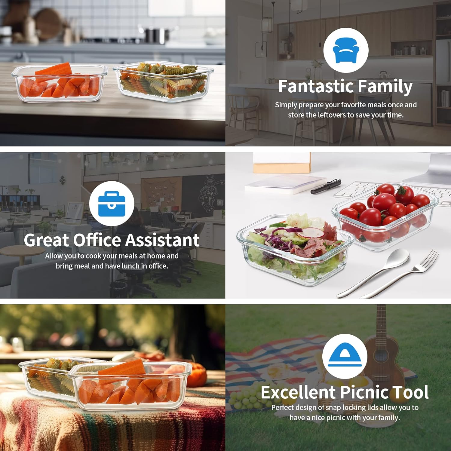 - [Oven, Microwave, Freezer Safe] Durable borosilicate glass containers designed to go from freezer to oven, containers are great for meal prep, leftovers, cabinet storage, and more, make meal prep simple and easy.