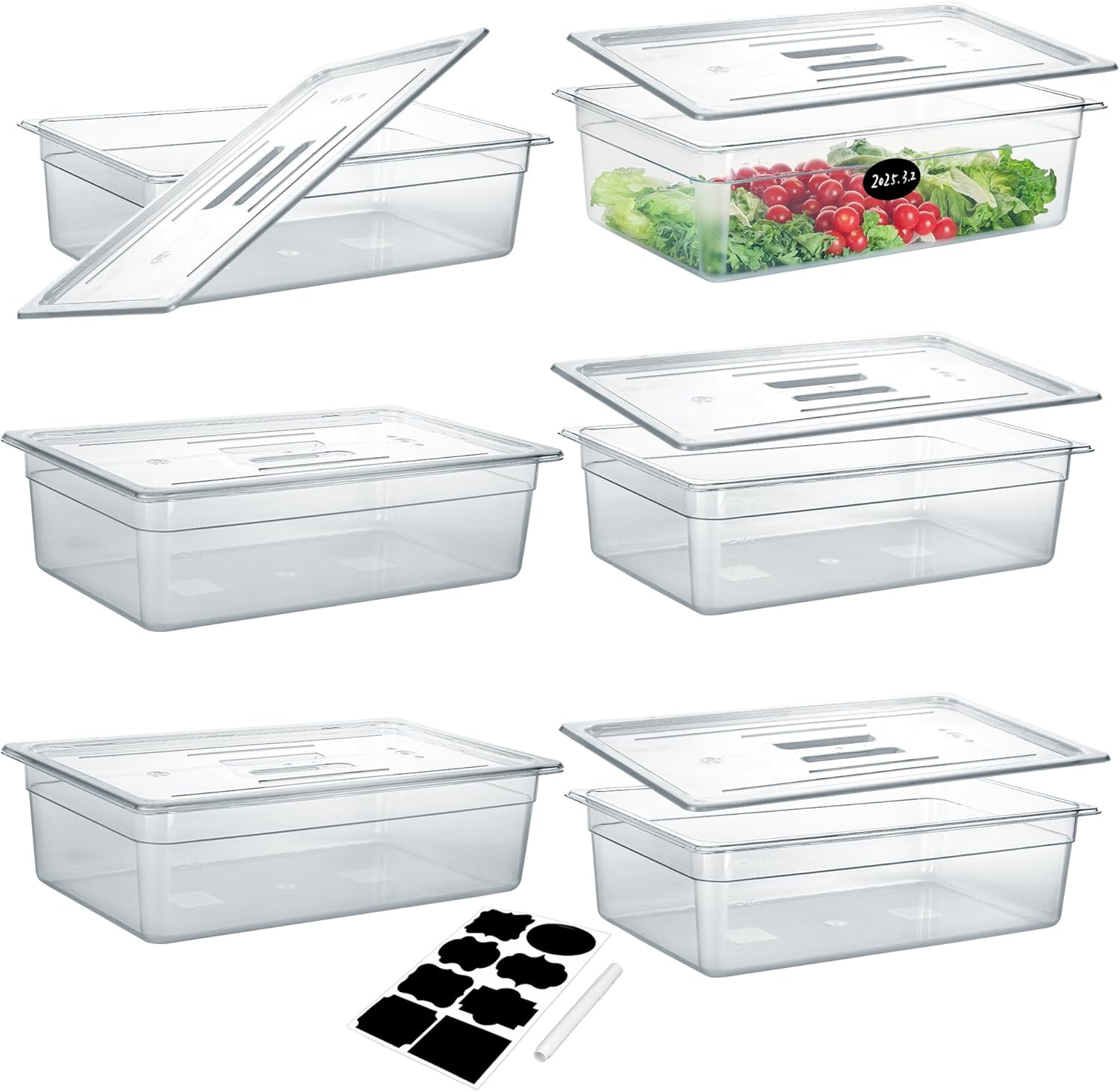 6 Pack NSF Food Pans with Lids, Full Size 6'' Deep Commercial Food Storage Containers, Polycarbonate, Clear