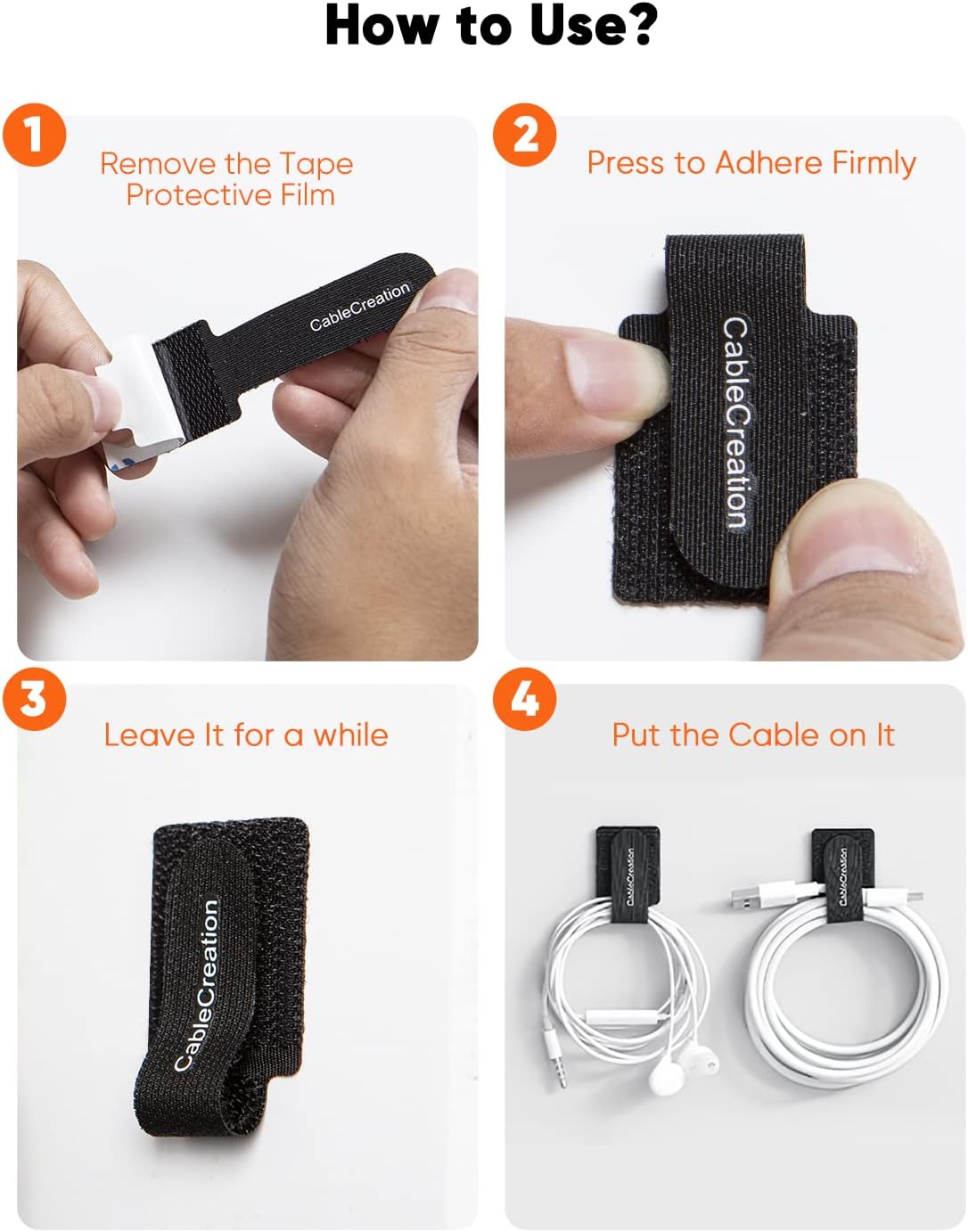 - What You Get: 5 PCS CableCreation self-adhesive cable ties. Durable design with nylon, 3m adhesive tapes. CableCreation provides the item with worry-free 24-month warranty,, lifetime technical support, and friendly customer service.