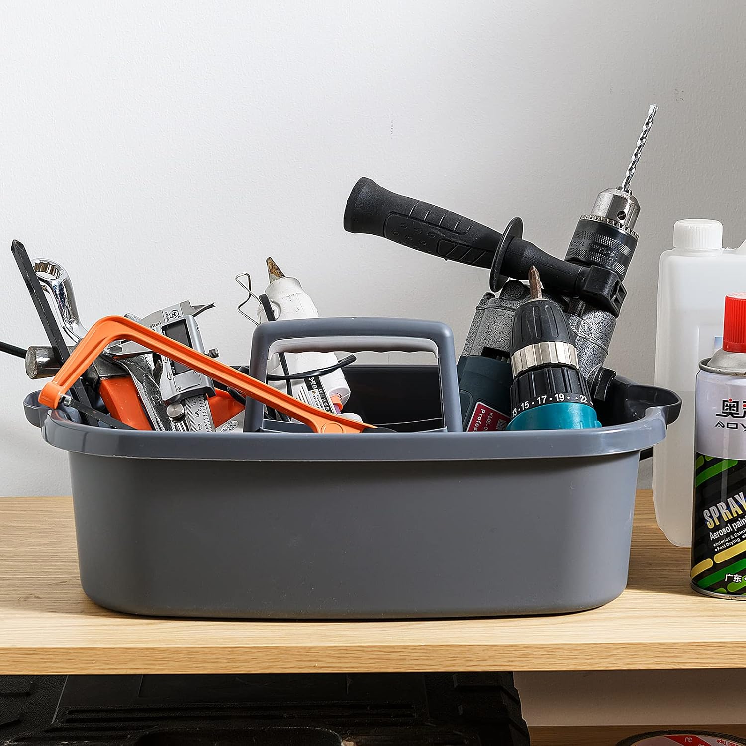 - 【Multifunctional】The cleaning supply caddy is versatile for all your household tasks. It can be a storage basket for storing cleaning supplies, spray bottles, brushes, cleaning cloths, paper towels, shower gel, shampoo, towels, cosmetics, hand soap, and office supplies