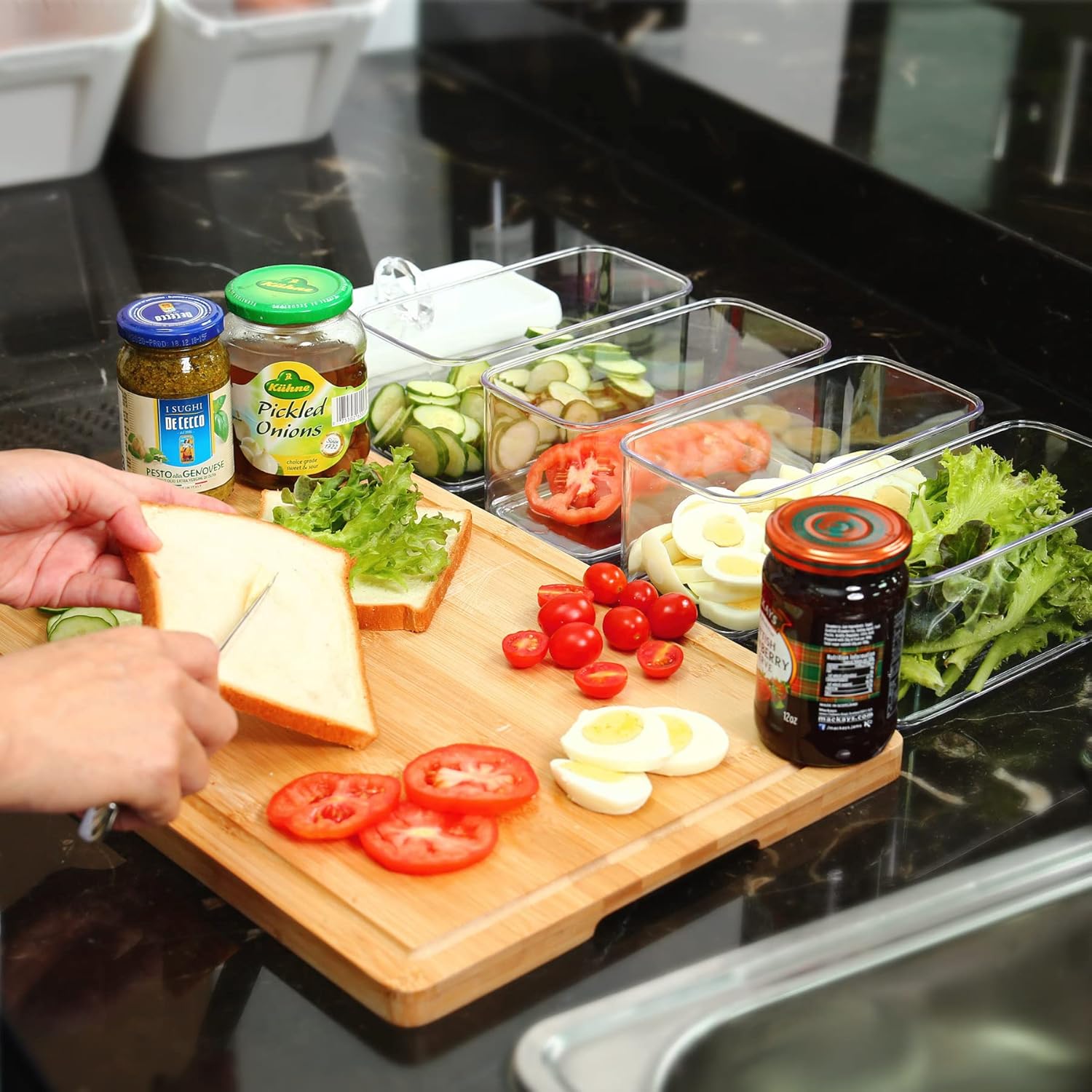 - 3 PIECES RECTANGULAR VEGGIE & FRUIT CONTAINER – FRIDGE ORGANIZER SET: Set includes 3 x 4 inch RECTANGULAR-S sized containers, each holding 1.1 quarts (1 liter). These containers are ideally sized for organizing a variety of uses, from storing household staples like candies, chocolate bars, coffee, sugar cubes, tea bags, and snacks, to organizing fruits, vegetables, and berries. They're also perfect for pet treats for dogs and cats.