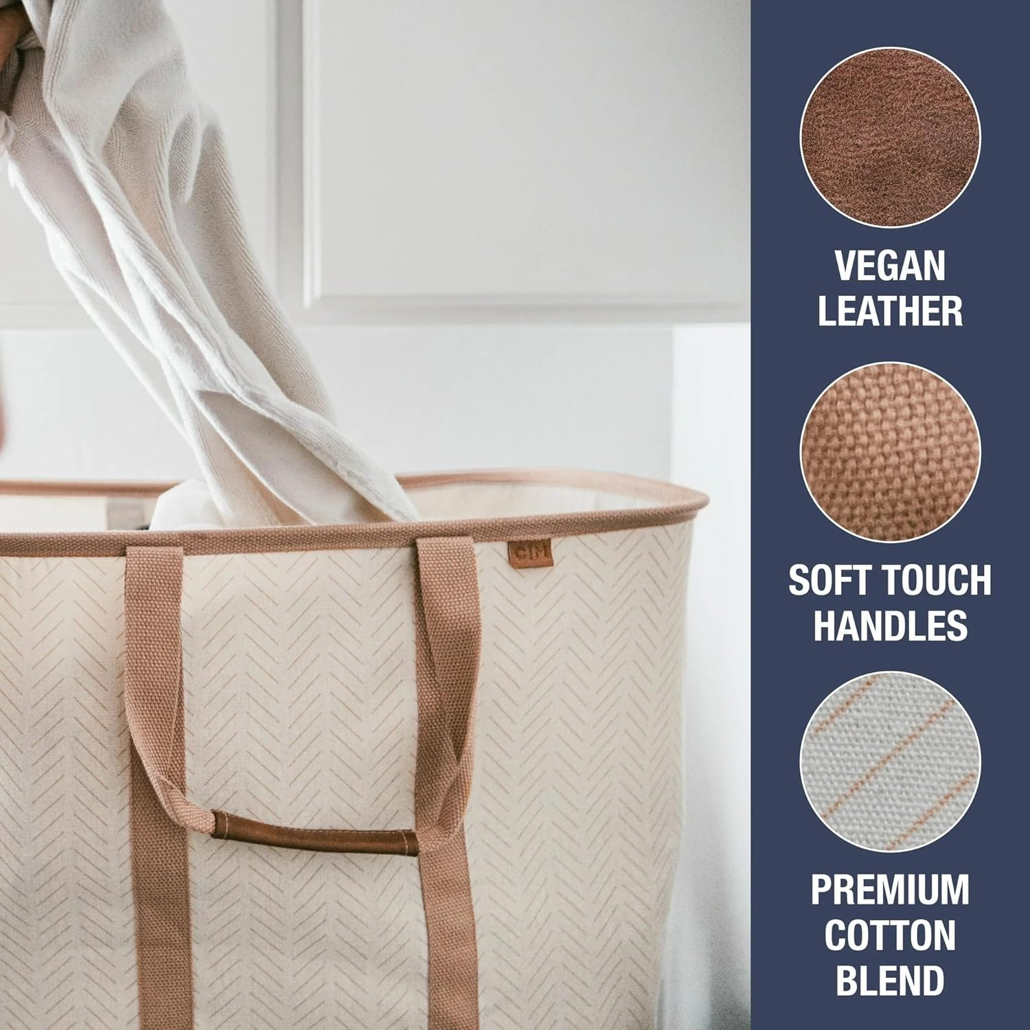 CleverMade Collapsible Laundry Caddy - LUXE Mocha 2-Pack 64L - Foldable Storage Organization Container for Clothes Laundry Room Storage Solution
