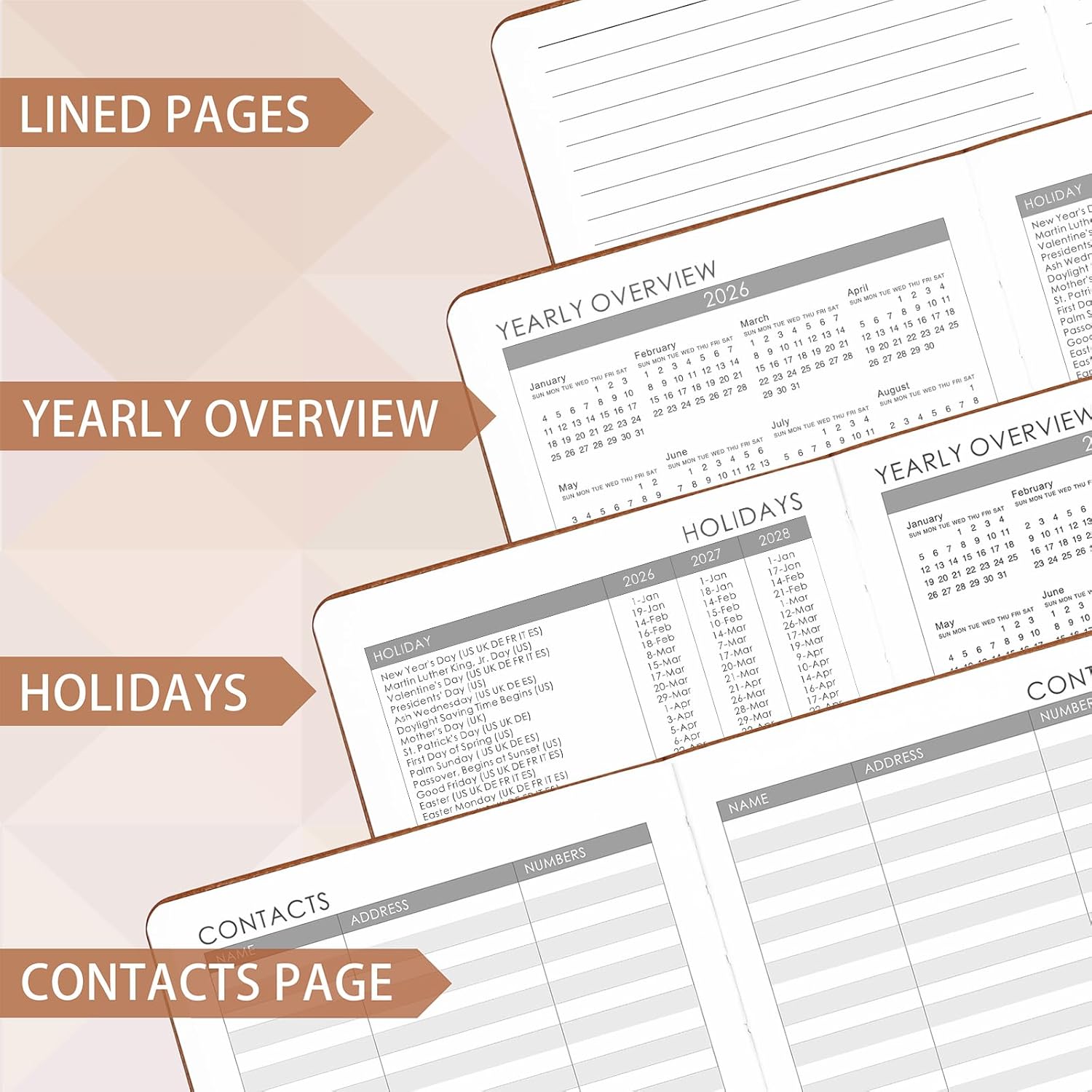 - High Quality 2026 Planner - Durable leather cover, excellent texture. 2026-2028 yearly holidays let you master the holidays clearly.