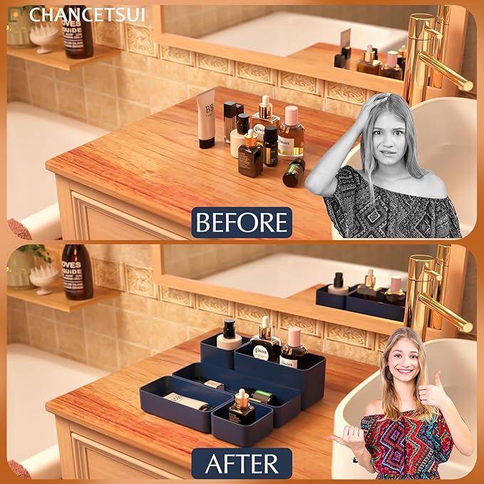- [ MULTIFUNCTIONAL ] The Plastic Drawer Organizers for Home Organization and Storage multi size tray set offers a wild range of storage spacing to fulfil your every needs. Ideal for kitchen, offices, bathroom, bedroom and more!