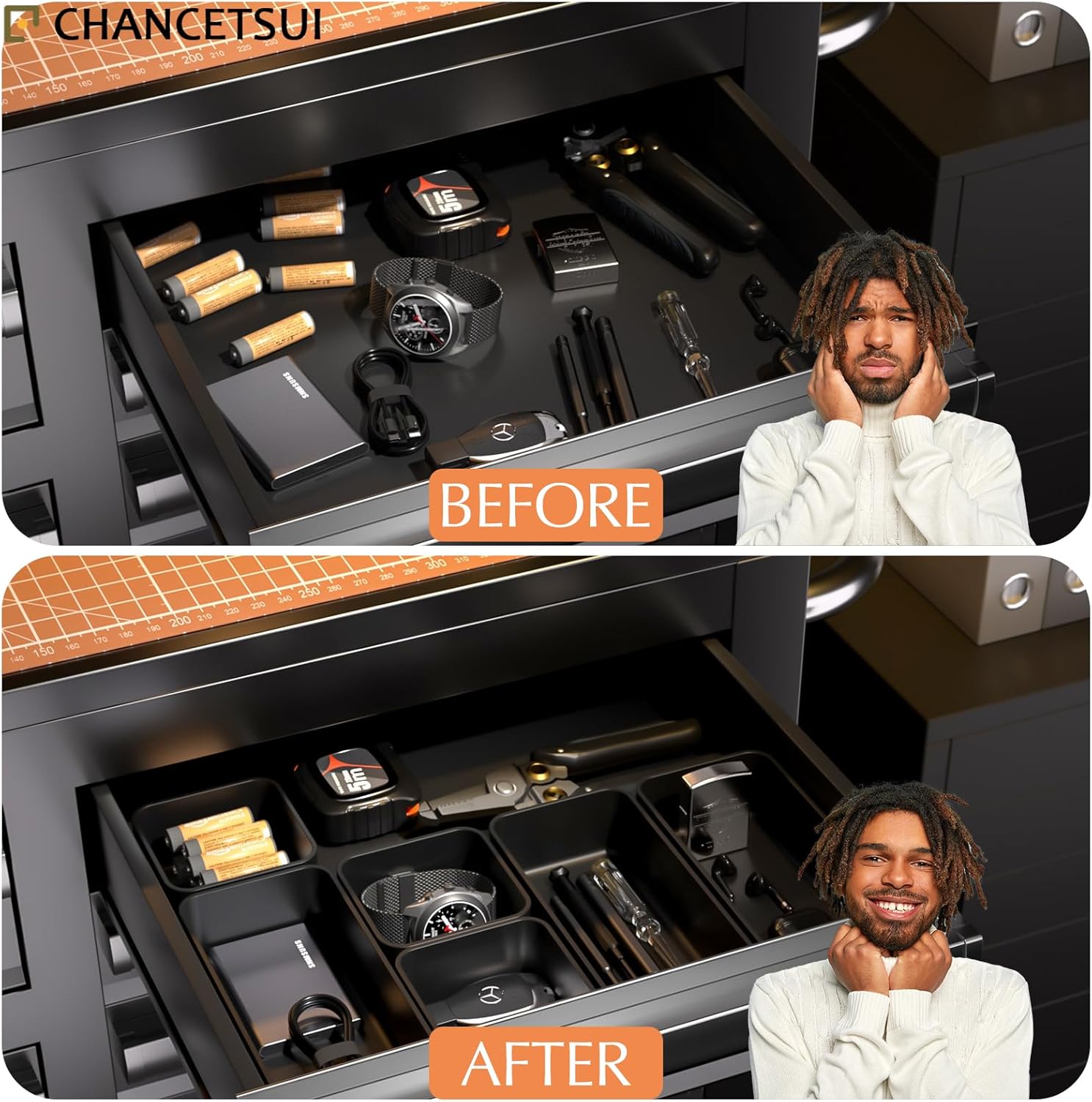 - 【Sturdy and Durable】 The desk drawer organizer trays set are made of durable and environmental PET plastic, ensuring a long life of use. Drawer organizer bins are break-resistant and could accommodate different items keeping the organiser nice and steadily stacked.