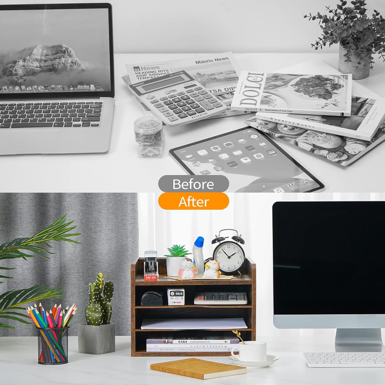 - 【Mutiple Storage Spaces】: Whether you’re trying to keep those in-going and out-going files organized, or just need a way to keep track of your latest projects, this wood desktop file organizer will be a versatile way to help get your home or office well organized.