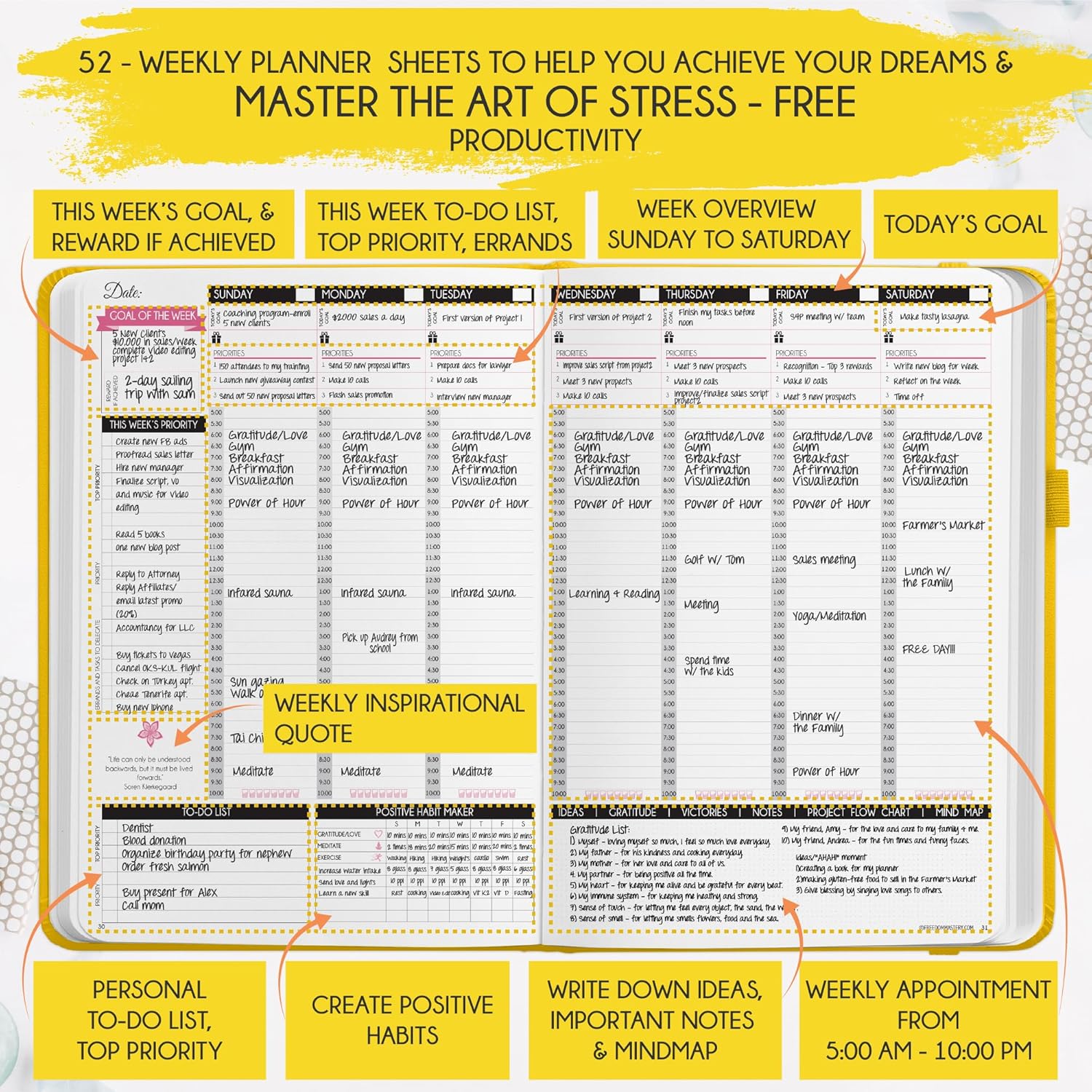 - WEEKLY & DAILY PRODUCTIVITY SYSTEM – Boost focus and happiness with this 2026 weekly planner that also works as a 2026 daily planner, goal planner, gratitude journal, and to-do list organizer. Based on the Law of Attraction framework, this 2026 planner weekly and monthly helps align your goals with actions for success.