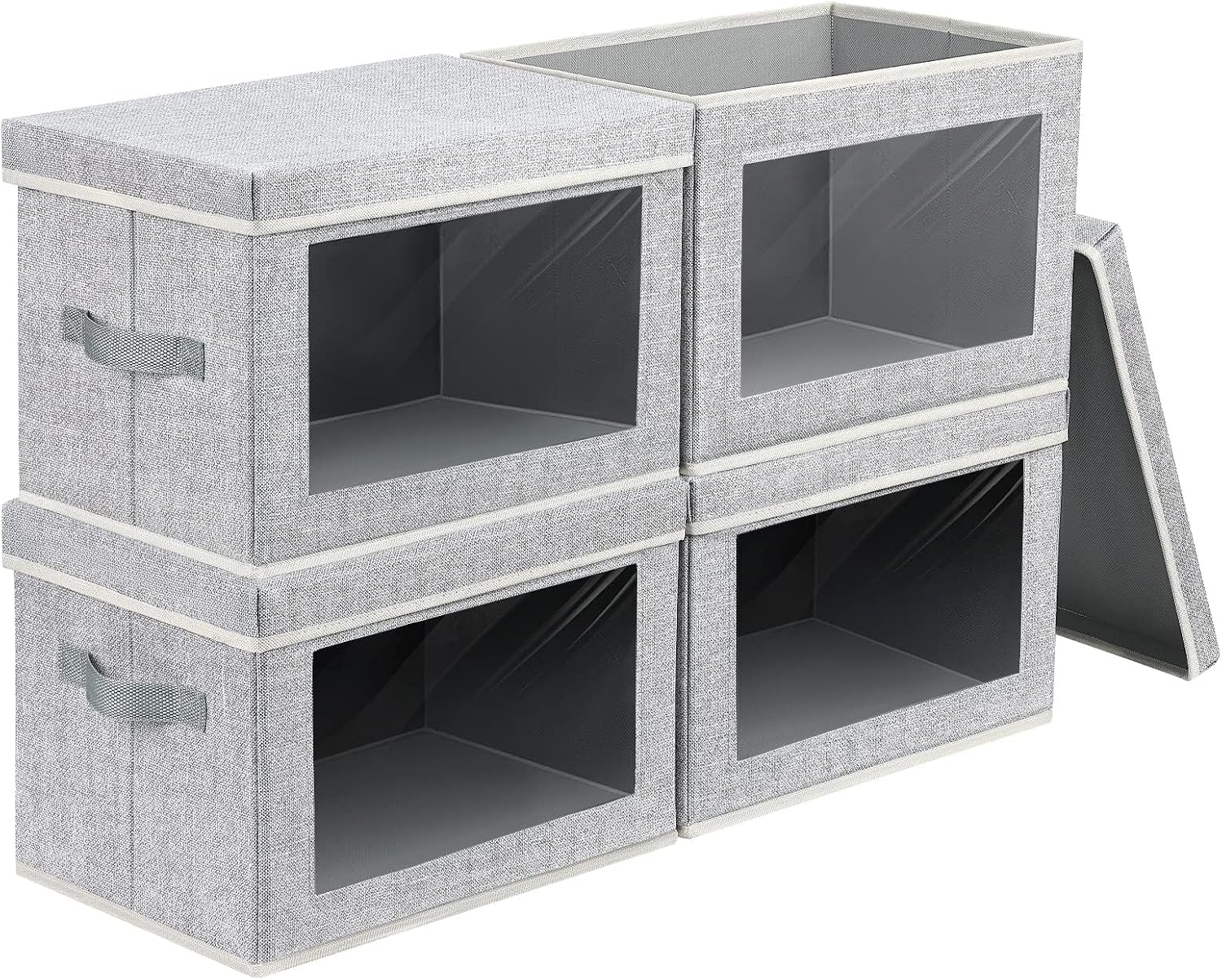 Storage Baskets with Lids, 4 Pack Large Box Organizer with Window, Fabric Storage Cubes Bins for Closet, Collapsible Organizer Bins for Bedroom, Living Room, Dorm, Blended