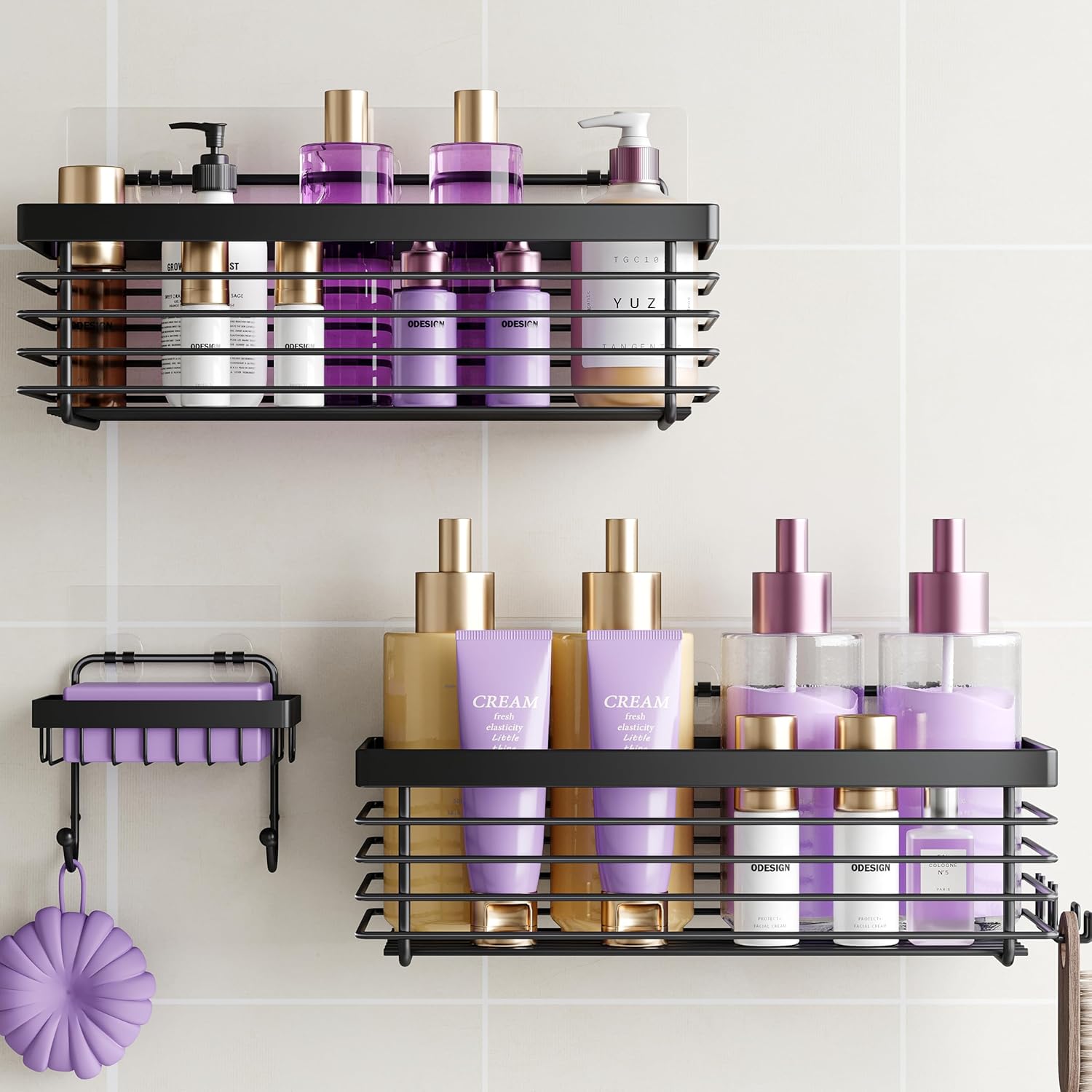 ODesign Shower Caddy 3 Pack SUS304 Stainless Steel-No Drilling-Shower Bathroom Shelves Rack,Rustproof Wall Mounted,Adhesive Shower Shelf Basket Organizer-Black