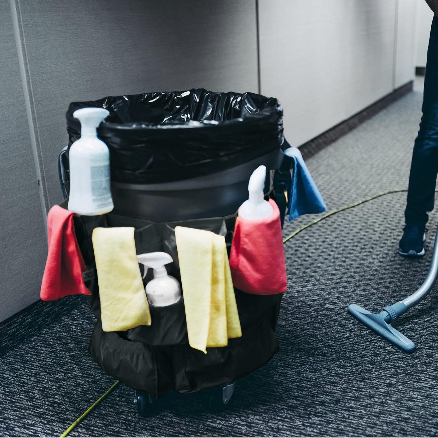 - MAKE YOUR JOB EASIER: With convenient buckle clip and velcro strap, the caddy bag attaches to the trash can easily. Makes janitorial work easier