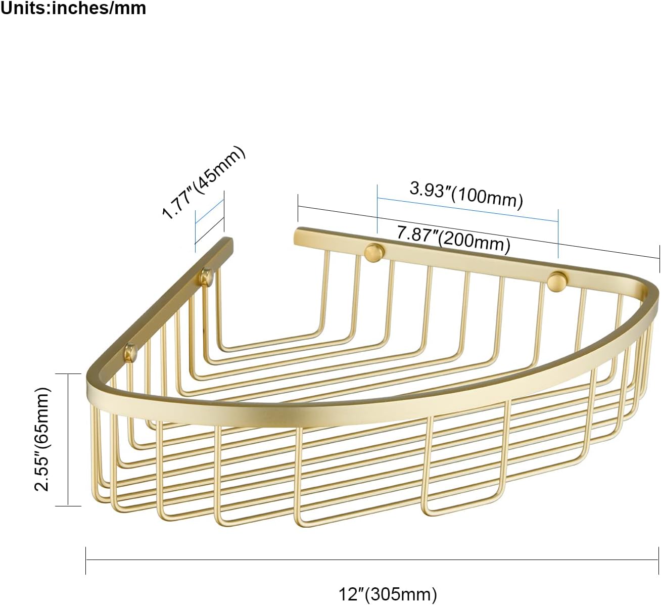 Bathroom Corner Shower Caddy Organizer, Corner-Hollow Design, SUS304 Stainless Steel Heavy Duty Rust-Proof Bathroom Shelf Organizer Holder, Wall Mounted Storage Rack, Brushed Gold