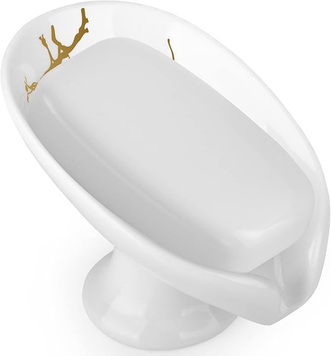 - 【Self Drainage Leaf Design】 This soap dish features leaf shape modern design with unique 45°oblique design for better drainage performance. Always keep your soap fresh & dry and reduce waste.This soap holder is a unity of Aesthetics and Practicality.