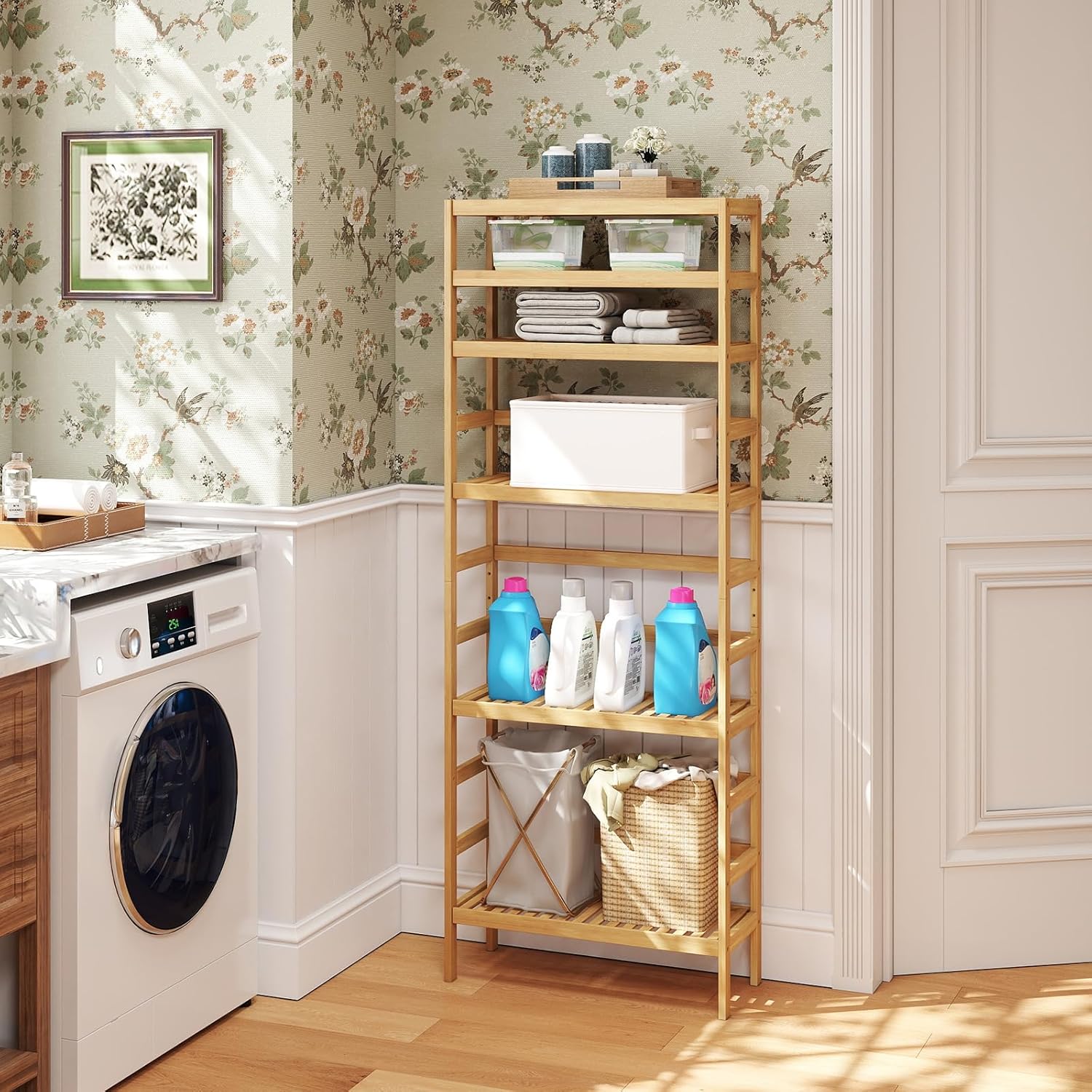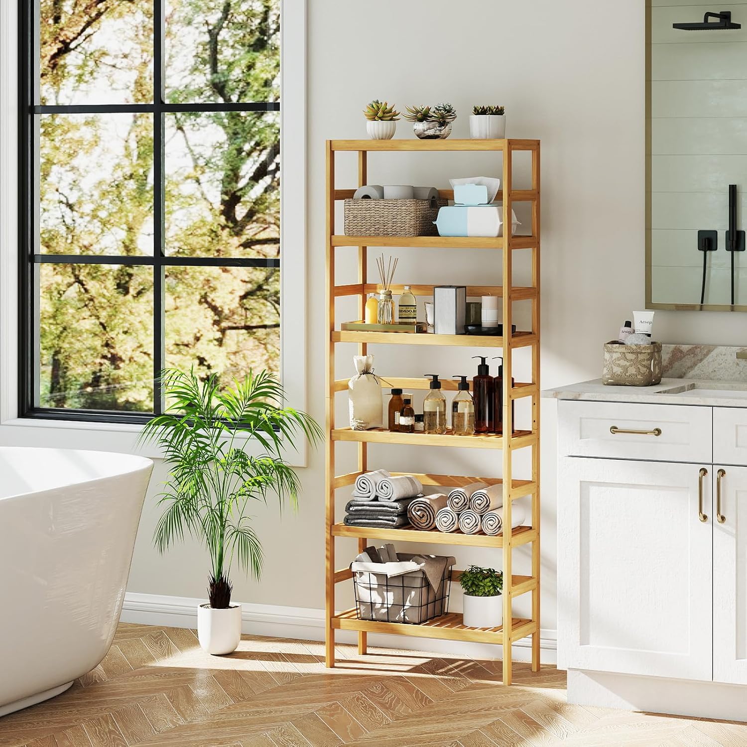 Bamboo Rack, Adjustable Bamboo Shelf, Stand Utility Storage Shelf Multifunctional Bathroom Kitchen Living Room Holder Plant Flower Stand (6-Tier)