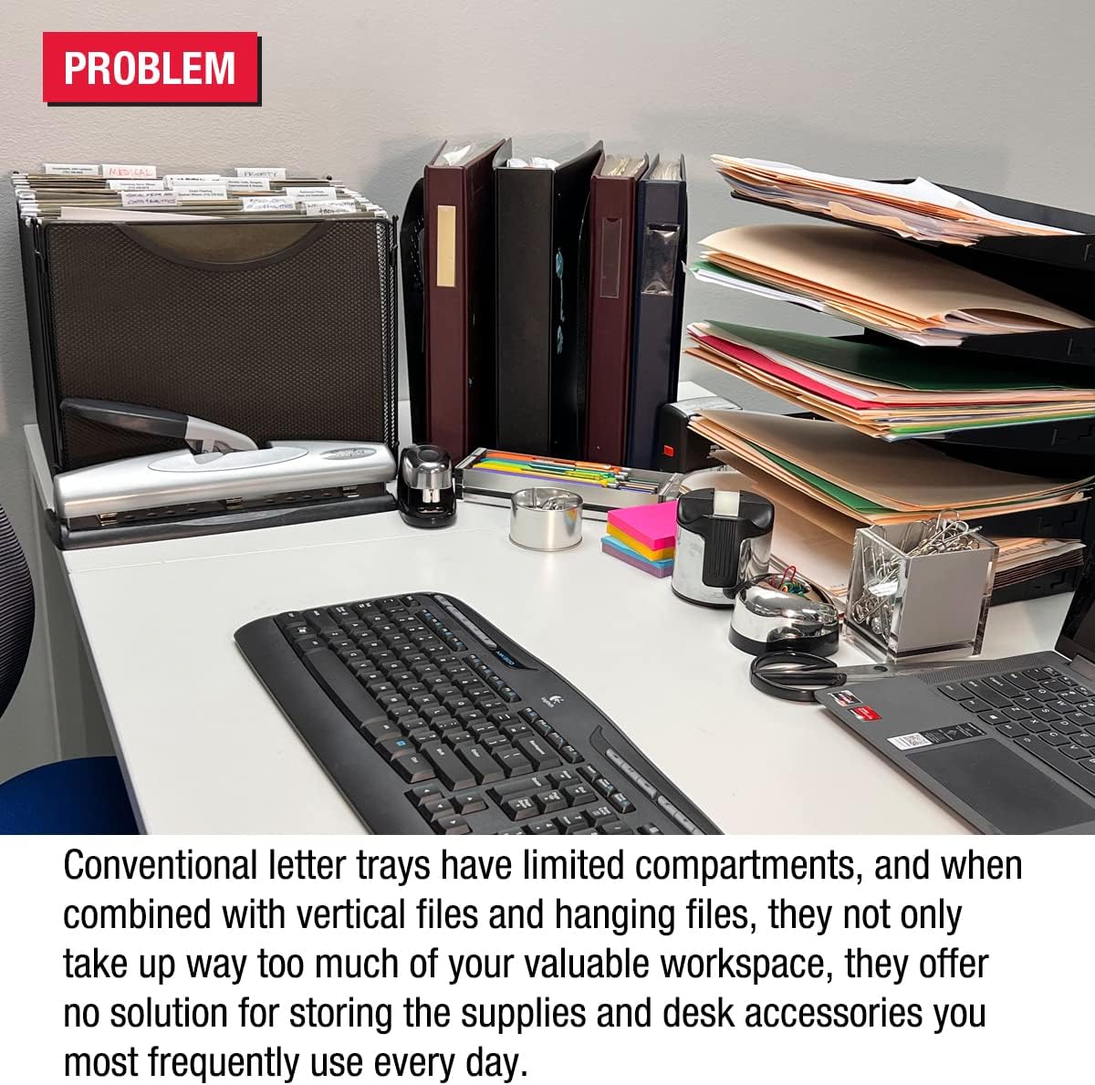 Desktop Organizer 12 Letter Tray Sorter with Hanging File Topper & 3 Supply Drawers - TierDrop Desktop Organizer Stores All of Your Documents, Books, Binders and Supplies in One Compact Modular System