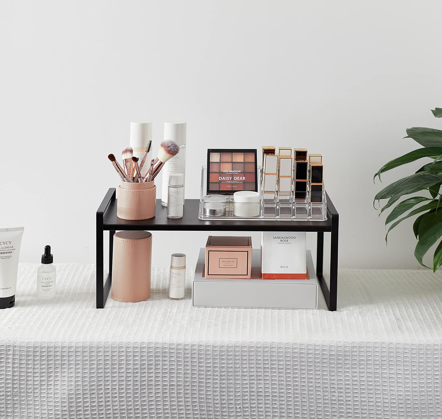 Nxconsu 2Pack Cabinet Shelves Stackable Shelf Organizer Rack Riser for Kitchen Cabinet Pantry Cupboard Counter Countertop Home Organization Storage Space Saver Heavy Duty Metal Nonslip Black