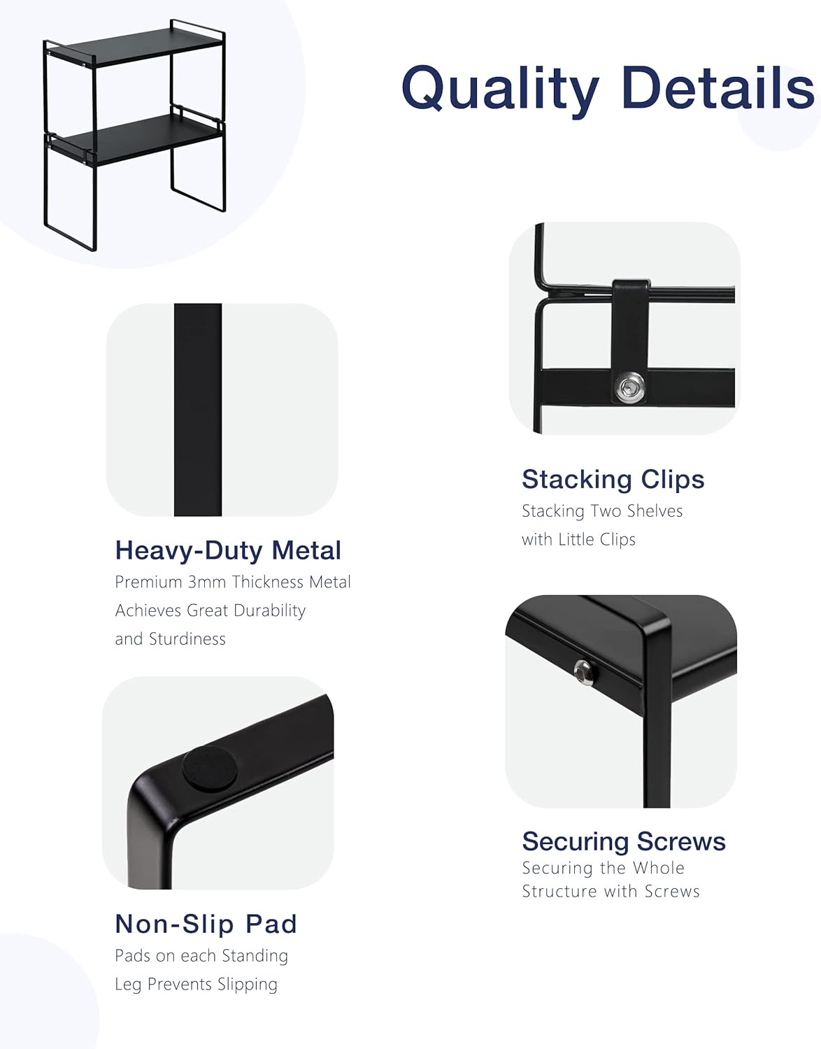 - CHARACTER DESIGN: This cabinet shelf can create plenty of space for your household items such as cups, pots, bottles, bowls, cookware, or canned foods without dominating space in your cabinet. This stylish cabinet shelf fits neatly on the countertop to keep your essentials organized and easily accessible.