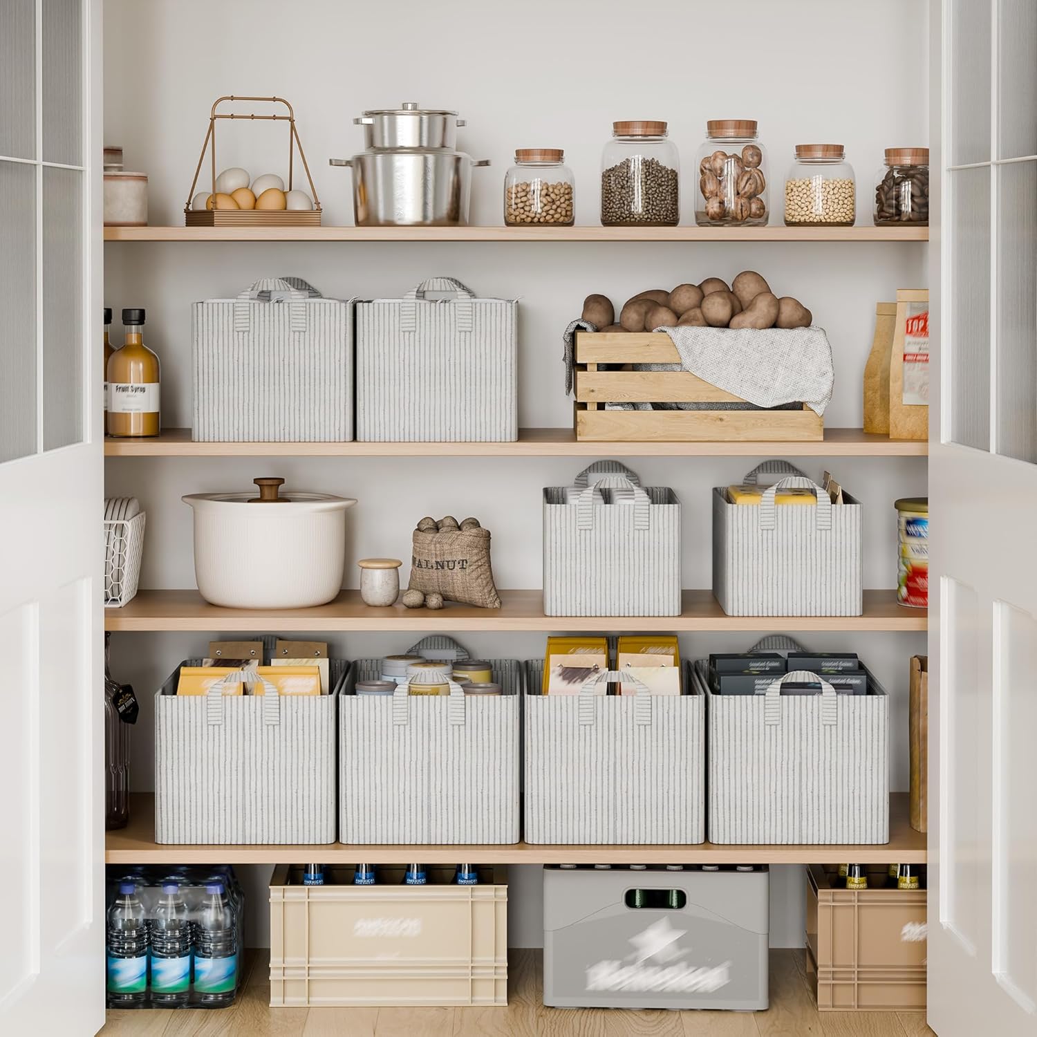 StorageWorks Storage Bins, Fabric Storage Bins for Shelves, Extra Large Storage Baskets with Metal Frame, Closet Baskets and Bins with Handles, Jumbo, Gray and White Stripes, 2-Pack