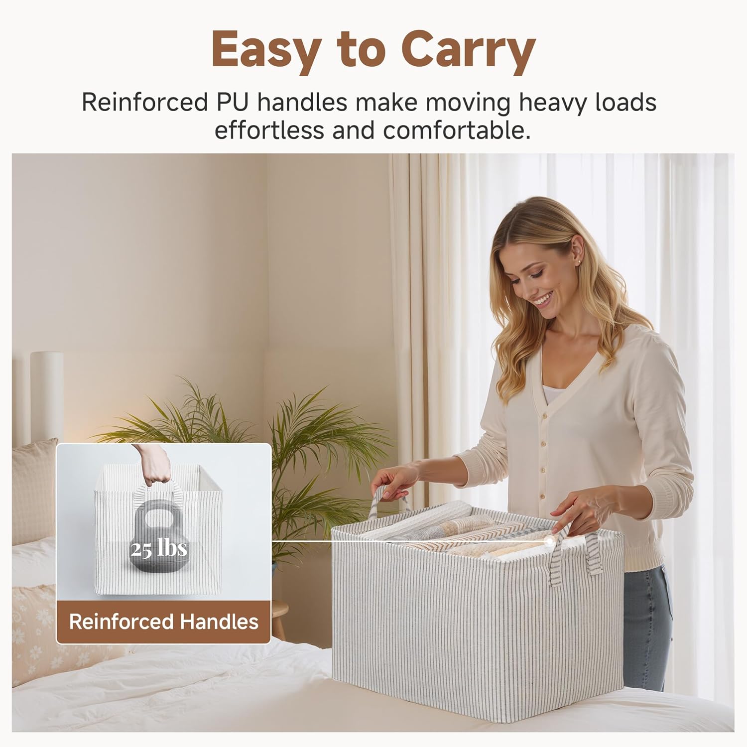 - Handle with Ease: With the 2 handles securely riveted to the sides of the storage bin, you can easily carry items without tearing the handles.