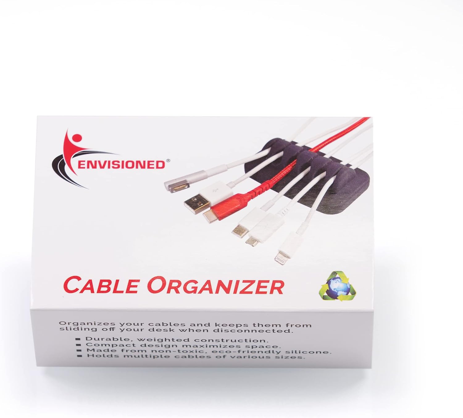 ENVISIONED Desktop Cable Organizer, Weighted, Eco-Friendly Silicone, No Bad Smell, Bundled with 4 Reusable Cable Ties (White)