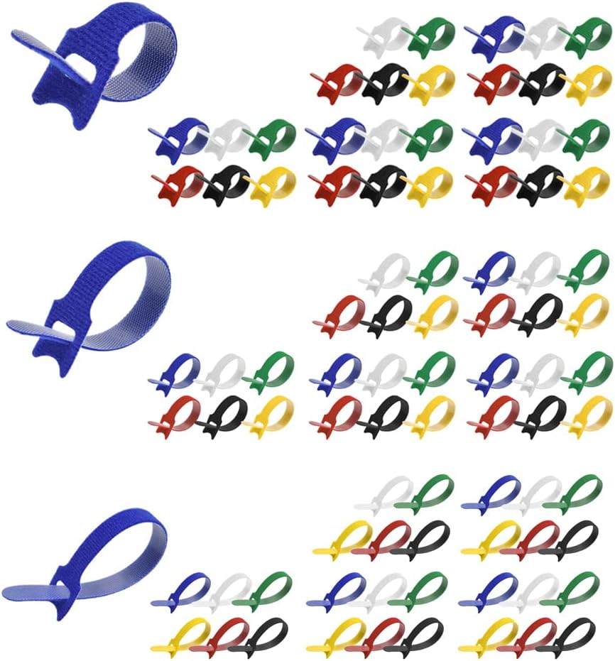 Reusable Hook and Loop Assorted (90-Pack), Assorted Color Self Gripping Multicolor Fastening Cable Ties - Multipurpose Microfiber Cloth Assorted Cable Organizer Ties