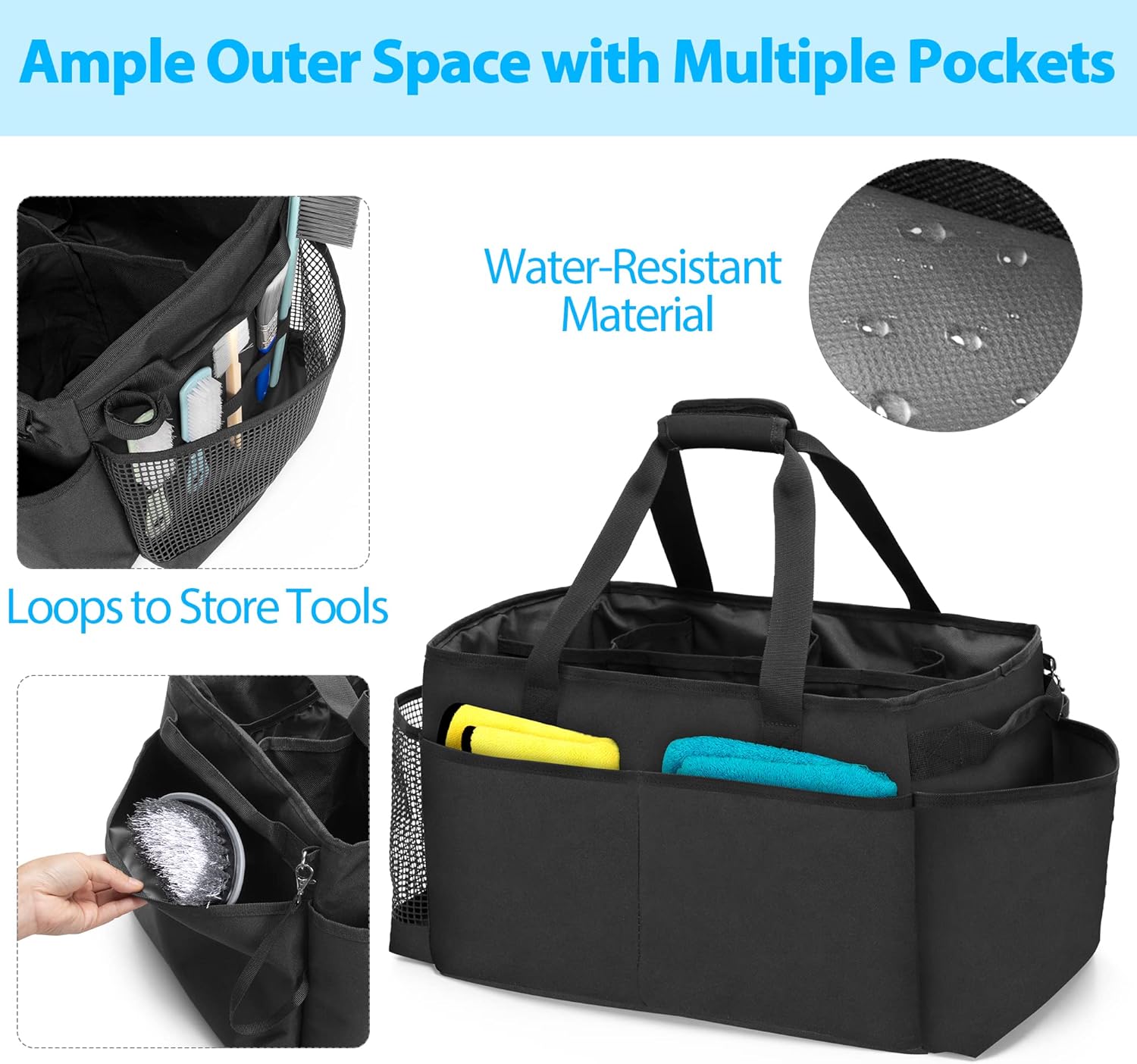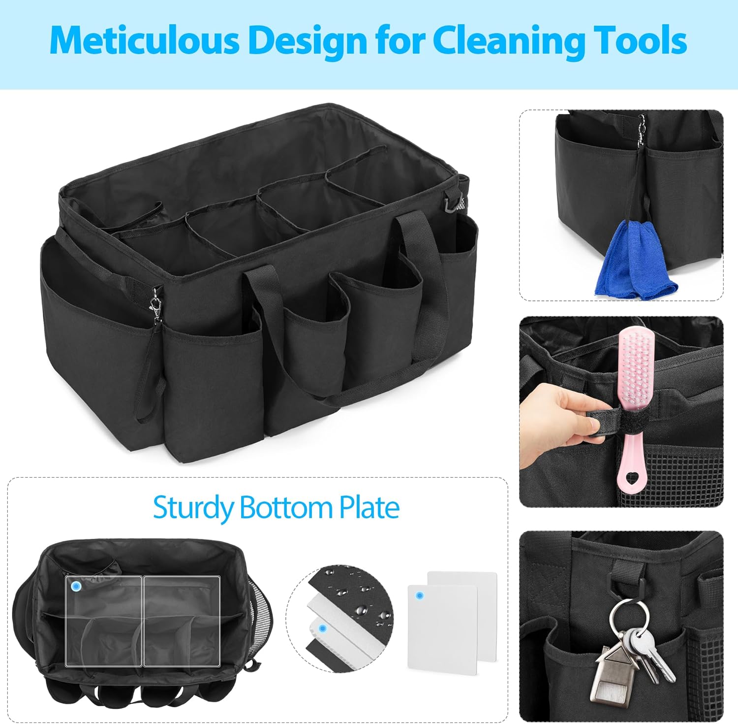 Extra-Large Cleaning Caddy, Organizer with Handles for Cleaning Tools & Products Storage, Large Capacity Tote Bag for Car, Home & Housekeeping Work, Black