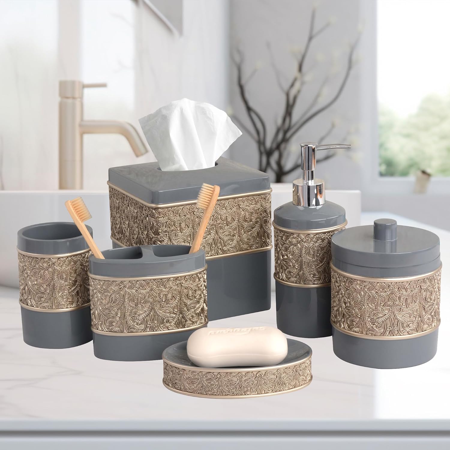 - PERFECT GIFT FOR ANY OCCASION: Whether it's for a housewarming, birthday, or simply to refresh someone’s home, this bath accessories set makes a thoughtful and practical gift for family, friends, or anyone who appreciates well-designed home essentials.