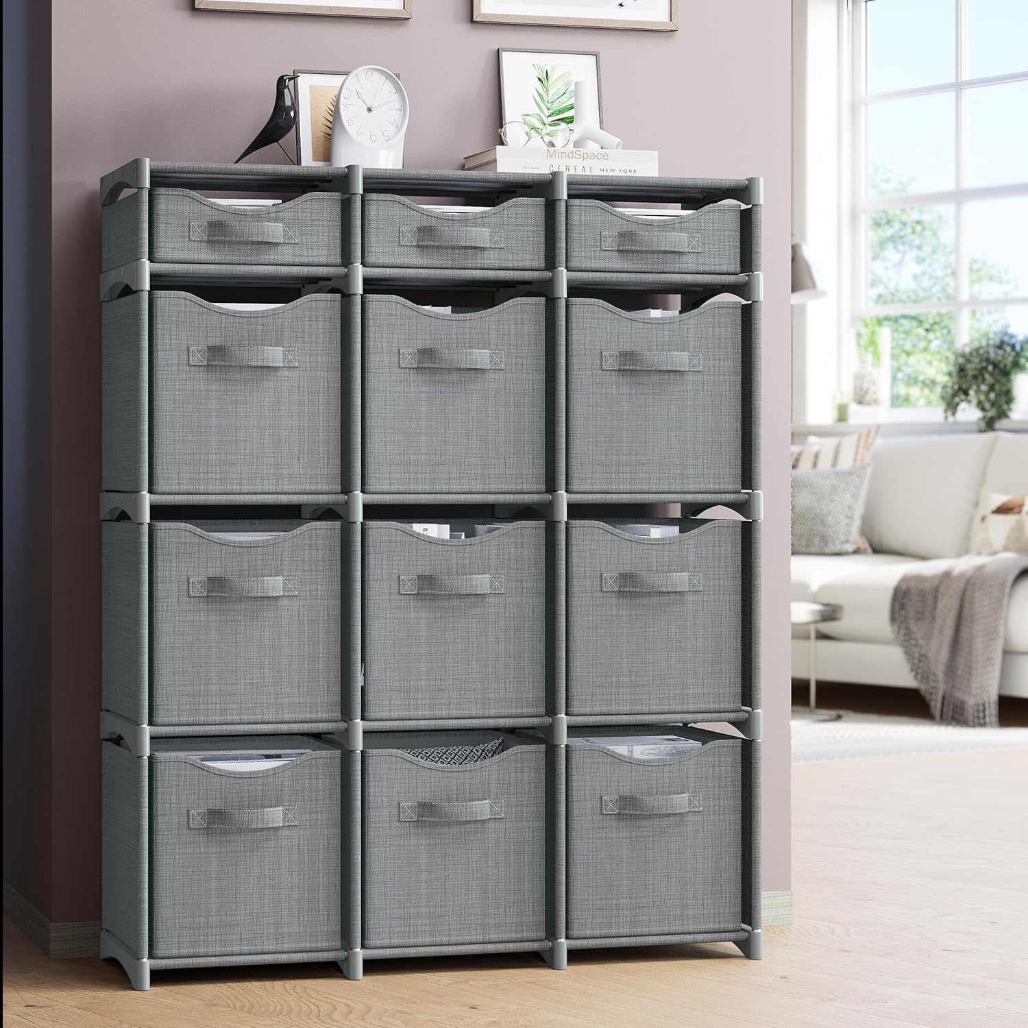 12 Cube Closet Organizers And Storage | Includes All Storage Cube Bins | Easy To Assemble Closet Storage Unit With Drawers | Room Organizer For Clothes, Baby Closet Bedroom, Playroom, Dorm (Grey)